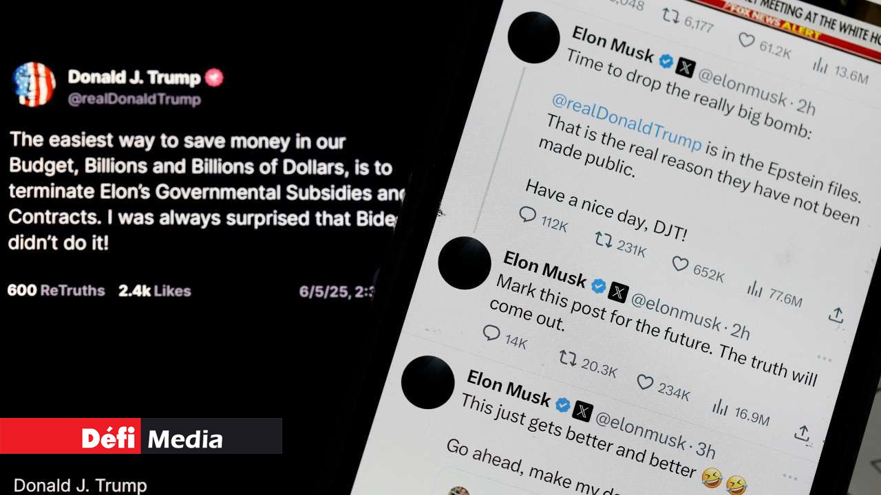 "Il est temps de lâcher la grosse bombe: (Trump) est dans les dossiers Epstein", a posté Elon Musk sur X, alors que sa querelle croissante avec le président a dégénéré jeudi en une violente prise de bec publique. "C'est la véritable raison pour laquelle ils n'ont pas été rendus publics."