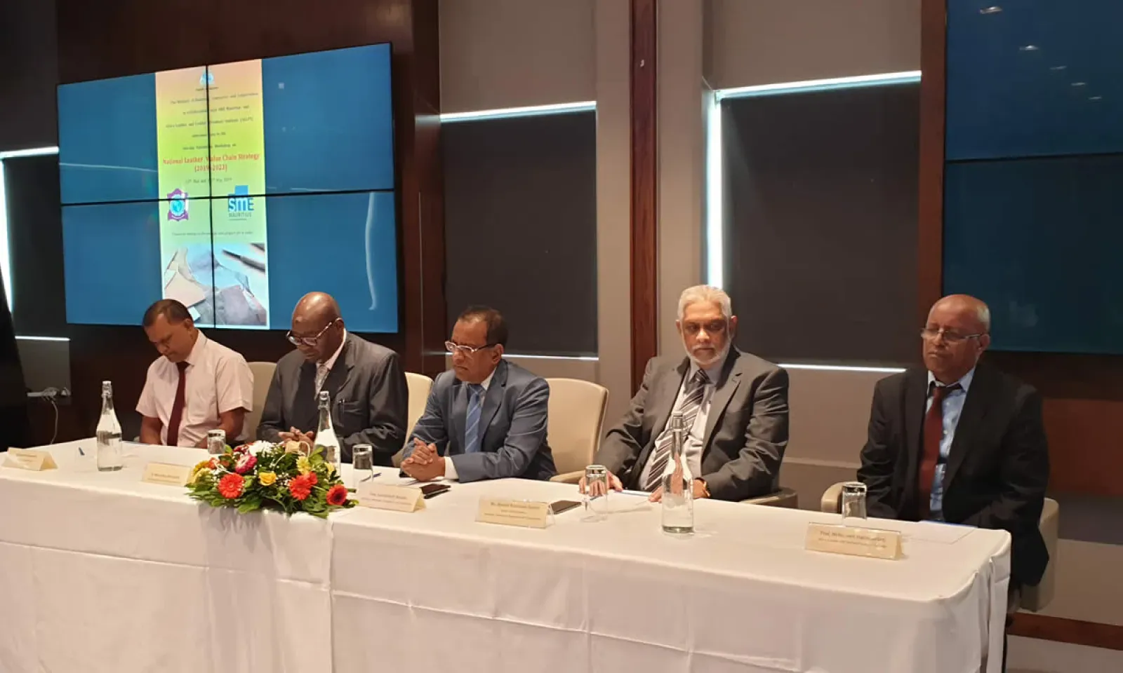 A first in Mauritius, a National Leather Value Chain Strategy was launched this week by the Minister of Business, Soomilduth Bholah, in the presence of other stakeholders, namely the Chief Executive Officer of SME Mauritius Ravin Rampersad, Dr Mwinyihija Mwinyihija and Professor Mekonnen Hailemariam, both from the Africa Leather and Leather Products Institute.