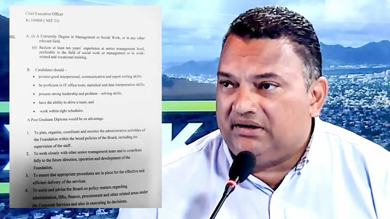 Or, tel n’est pas le cas pour Hans Margueritte. Même si ce dernier possède une dizaine d’années d’expérience dans le domaine du social, il n’a toutefois étudié que jusqu’à la Form V (Grade 11). La question qui se pose désormais est de savoir comment Hans Margueritte a pu être nommé à la tête de la NEF alors qu’il ne possède pas les qualifications requises.
