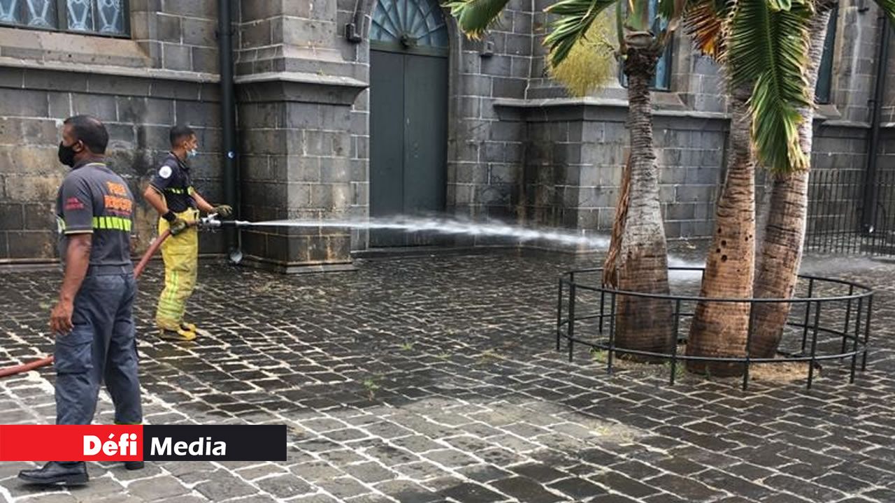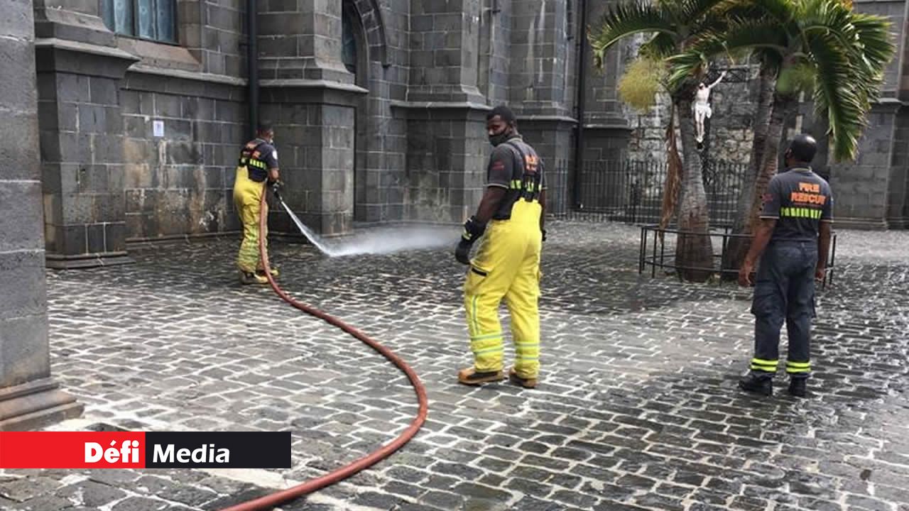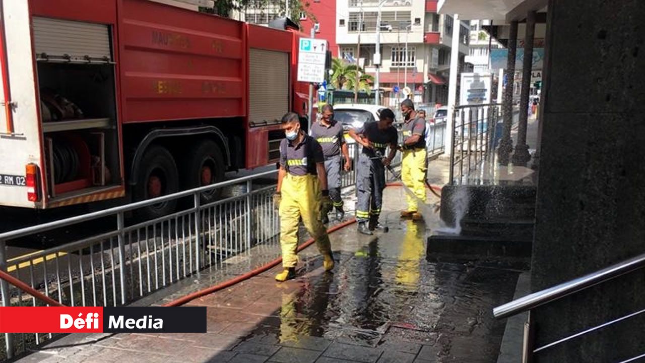 La mairie de Port-Louis poursuit sa campagne de nettoyage et de désinfection. Ce mercredi 24 mars, ce sont les endroits où squattent habituellement les sans domicile fixe le soir qui ont fait l’objet d’un lavage à grande eau par des officiers de la Mauritius Fire & Rescue Service. Parmi, la rue La Chaussée (à proximité d’une chaîne de restauration rapide) ou encore le parvis de l’église Immaculée, à la rue Brown Séquard.