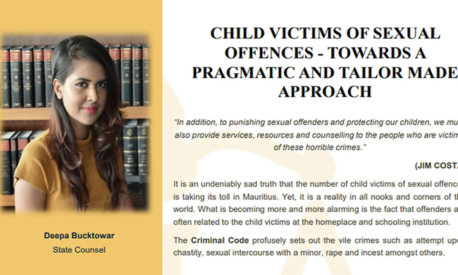 «Une approche pragmatique et sur mesure dans le judiciaire pour les enfants victimes d’abus sexuels». C’est ce que recommande, le bureau du Directeur des Poursuites Publiques (DPP) dans sa dernière newsletter. Un article rédigé par la State Counsel, Deepa Bucktowar.