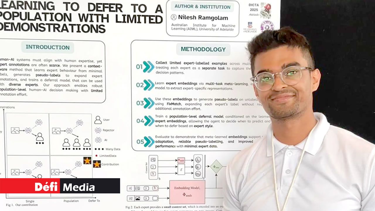 Une semaine plus tôt, Nilesh Ramgolam avait également présenté ses recherches à DICTA 2025, une conférence de référence en vision par ordinateur et apprentissage automatique. Son article, ‘Learning to Defer to a Population with Limited Demonstrations’, propose une nouvelle approche de l’IA, visant à déterminer quand les systèmes doivent agir de manière autonome et quand faire appel à l’expertise humaine. Ce travail a des implications cruciales pour des domaines sensibles, comme l’imagerie médicale.