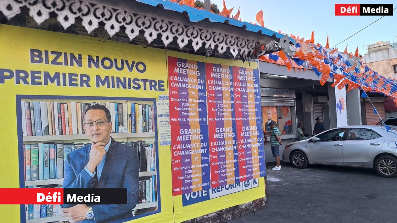 Des affiches du Reform Party — qui a officialisé vendredi son alliance avec Linion Moris — et celles de l'Alliance du Changement sont placées juste devant un local de l'Alliance Lepep. Aperçu à Beau-Bassin ce lundi.