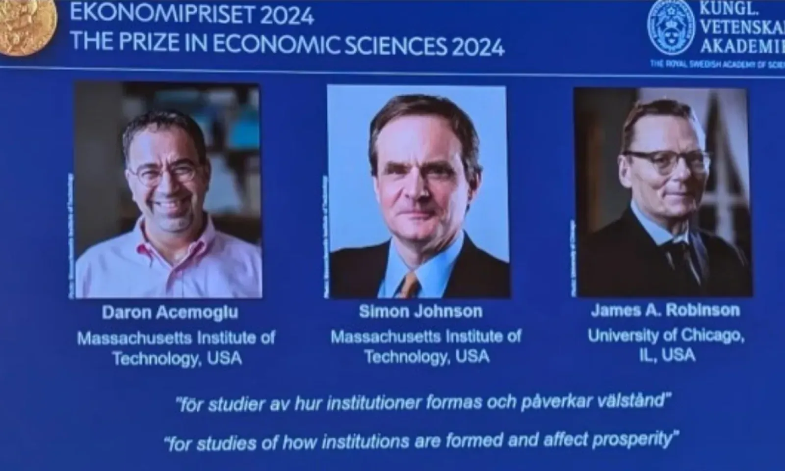 Le prix Nobel d'économie, qui clôt la saison 2024, a récompensé lundi l'Américano-turc Daron Acemoglu et les Britanno-américains Simon Johnson et James A. Robinson pour leur recherche sur les différences de prospérité entre les nations.