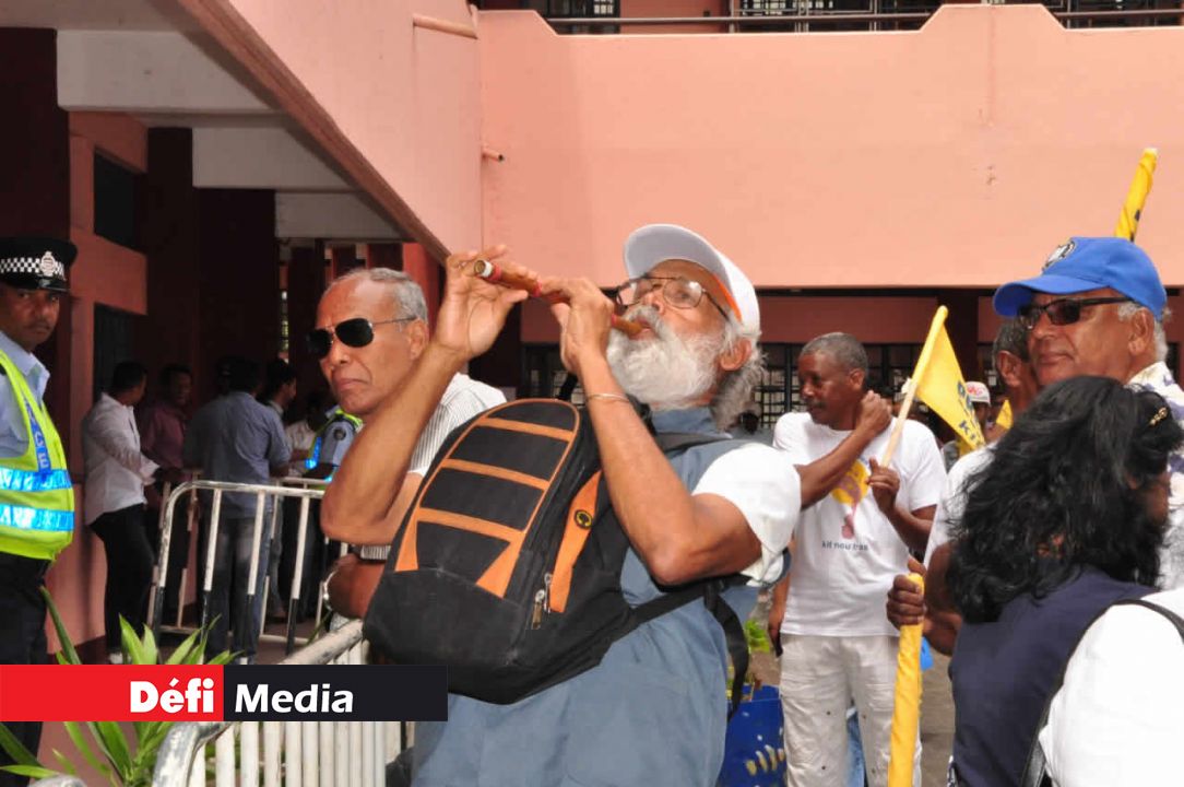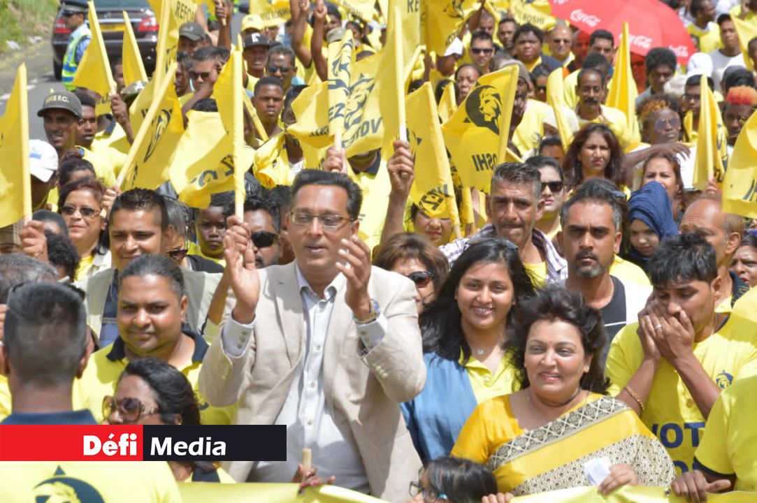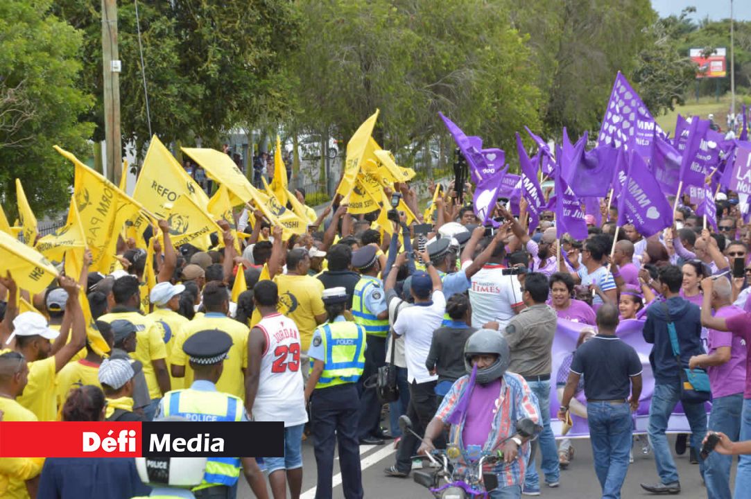 Cris de guerre, pétarades, T-shirts et banderoles aux couleurs des partis… C’est sous un soleil de plomb que les partisans ont exprimé leur solidarité aux dirigeants des diverses formations politiques. Les sympathisants du Reform Party ont ouvert le bal. Ils sont arrivés vers 10 heures. Tambour, ravannes, microphone et haut-parleur… tout y était pour créer l’ambiance voulue, au son du séga typique. Vêtus de T-shirts jaunes portant l’emblème du parti, ils scandaient le nom de leur leader le long de la Sodnac Link Road jusqu’au centre de dépôt des candidatures.