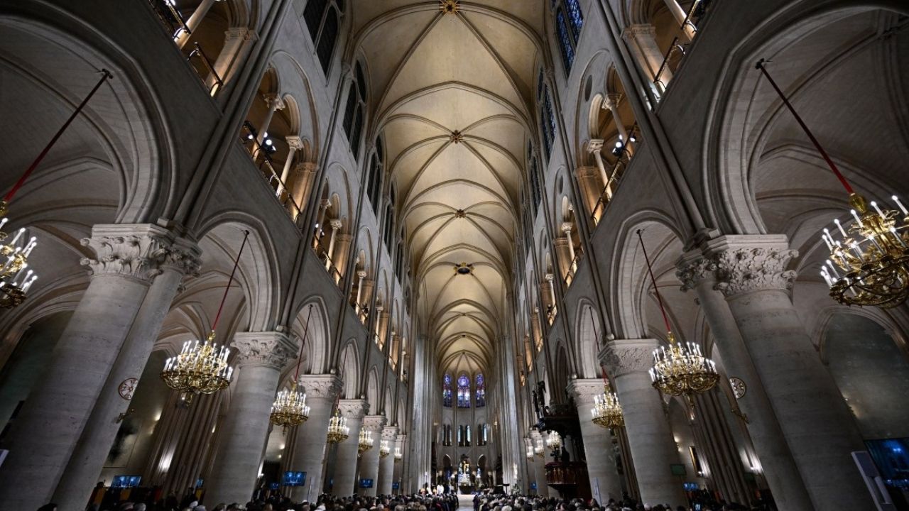 Cinq ans après un incendie ravageur, Notre-Dame de Paris célèbre dimanche matin sa première messe devant un parterre de dirigeants, représentants de l'Eglise, bénévoles et personnes précaires, au lendemain de sa réouverture officielle.