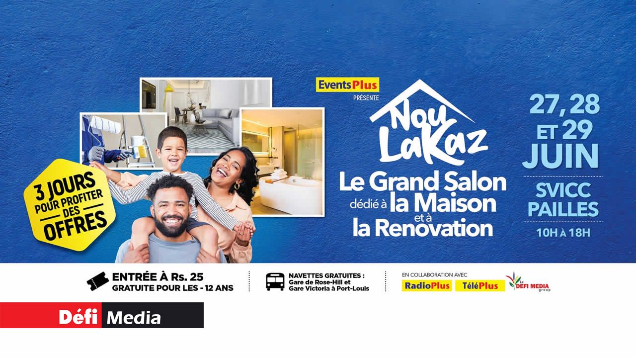Clap de fin, ce dimanche 29 juin, pour Nou Lakaz – Le Grand Salon dédié à la Maison et à la Rénovation, qui se tient au centre Swami Vivekananda à Pailles. Présenté par Events Plus, en partenariat avec Radio Plus et Le Défi Media Group, l’événement rassemble des exposants proposant des promotions exclusives sur une large gamme de produits. Une dernière occasion à ne pas manquer pour faire le plein de bonnes affaires et transformer votre intérieur.