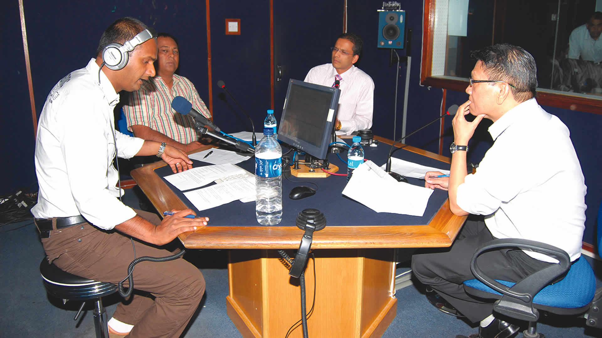 - Nawaz Noorbux et Jugdish Joypaul reçoivent les appels des auditeurs qui donnent leurs avis sur des sujets d’actualité.
