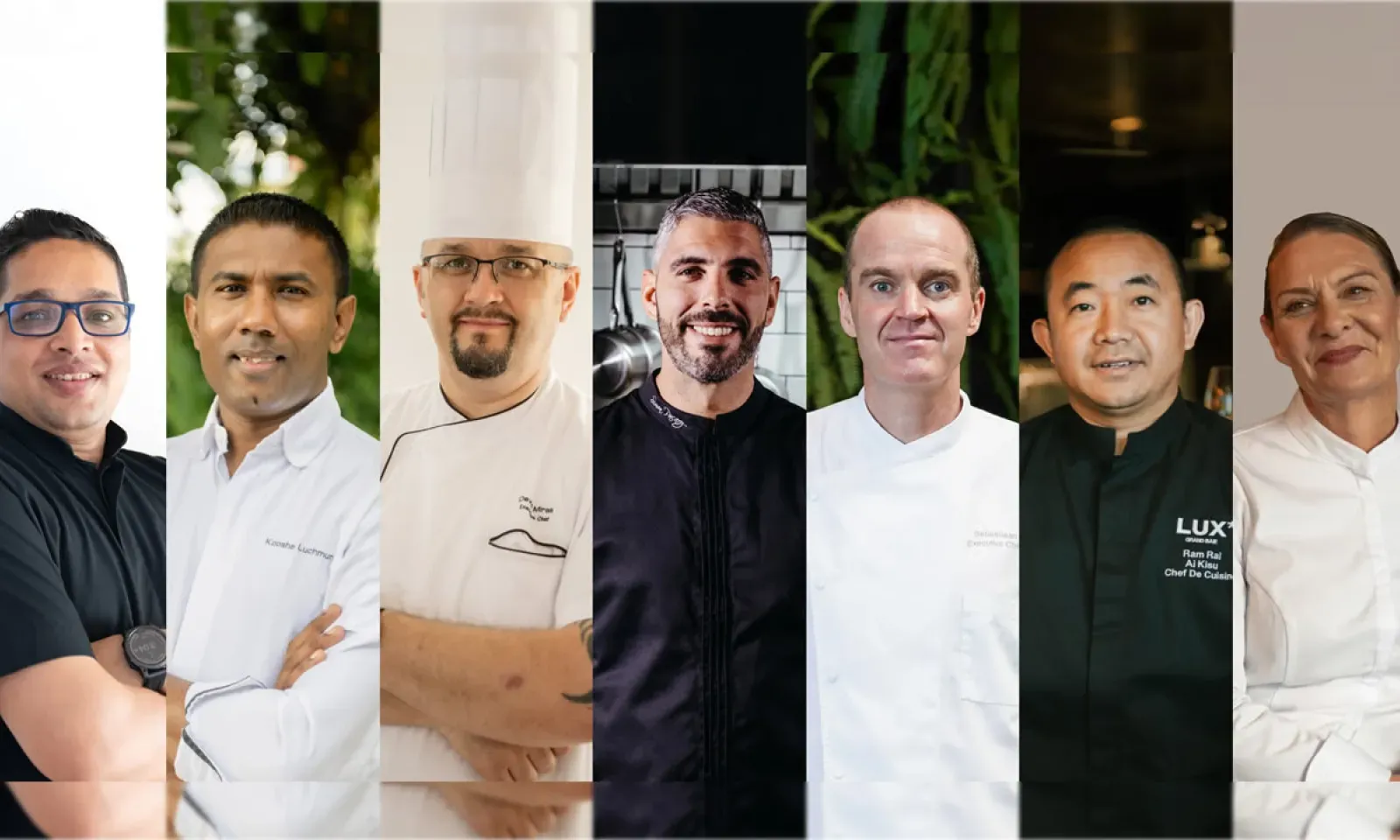 Les chefs Sebastiaan, Ram et Simon de LUX* Grand-Baie, Nancy de LUX* Belle-Mare, Saurabh de LUX* Le Morne, ainsi que David et Kooshal de LUX* Grand-Gaube feront preuve de leur maestria le temps d'une soirée gastronomique inédite. L'expérience commence dès l'arrivée au restaurant avec des amuse-bouche iodés, tels que les Sea Jewels Delight, avec coquille Saint-Jacques aux agrumes et au caviar de Madagascar, Nori Cap avec Hijiki, concombre, sauce crème épicée, thon et saumon, Anticucho Galbi Fusion avec poulet, Baby Gem, soja et ciboulette.