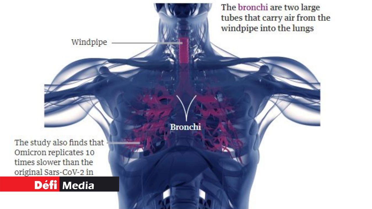 Il s’avère que le variant omicron se multiplierait 70 fois plus rapidement que les autres variant incluant Delta dans des échantillons de tissus prélevés dans les bronches, les principaux tubes de la trachée aux poumons selon une étude de l’université de Hong Kong, rapporte le journal anglais The Guardian.