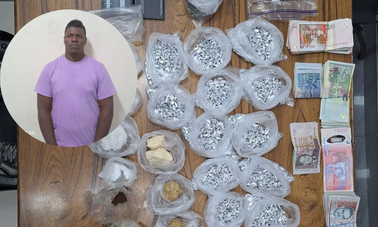 Lors de cette perquisition, les officiers ont également mis la main sur 211 grammes d’héroïne, 167 grammes de Crystal Meth, 150 grammes de drogue synthétique ainsi que des papiers trempés imbibés de cette même substance. Une somme de Rs 276 200 en espèces, soupçonnée de provenir du trafic de drogue, a aussi été saisie.