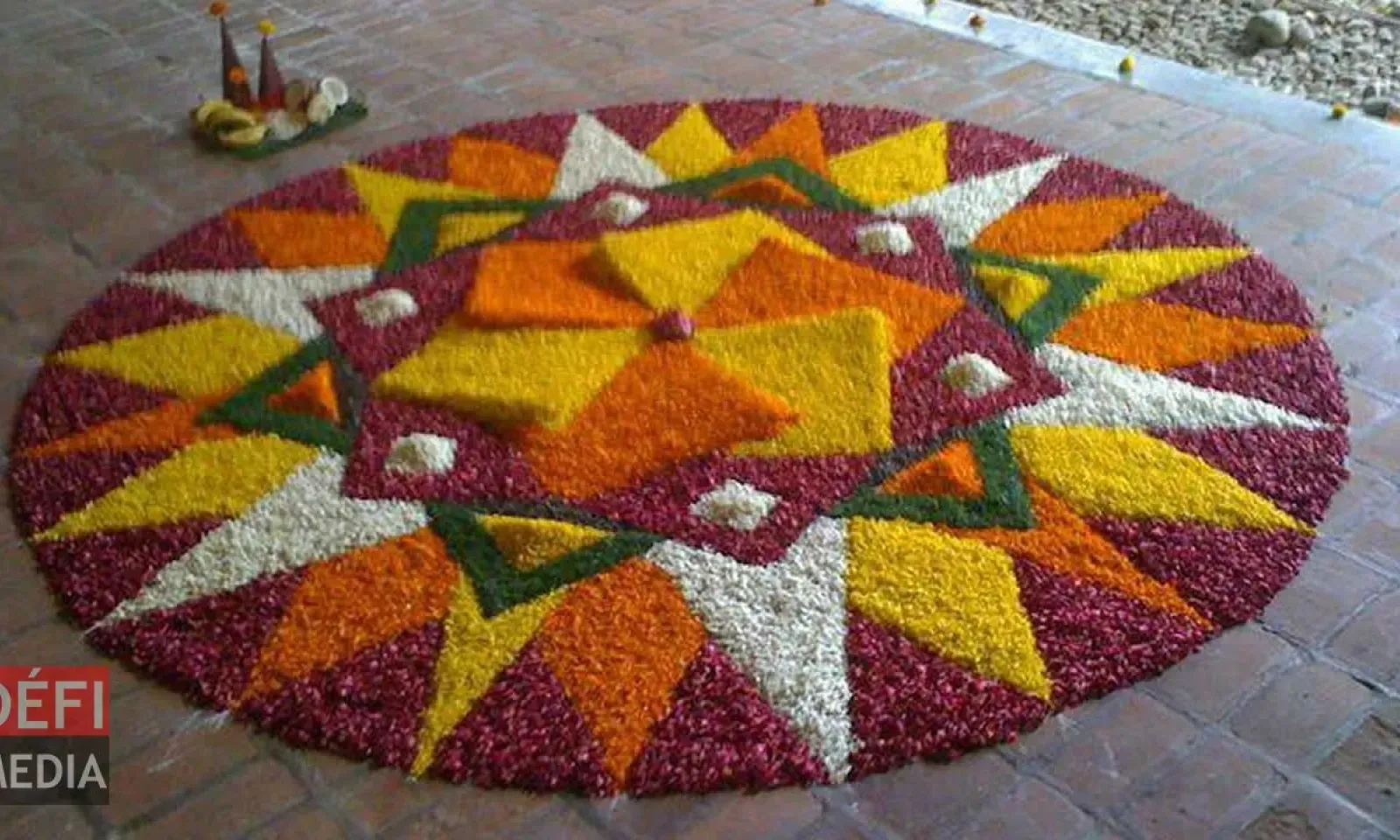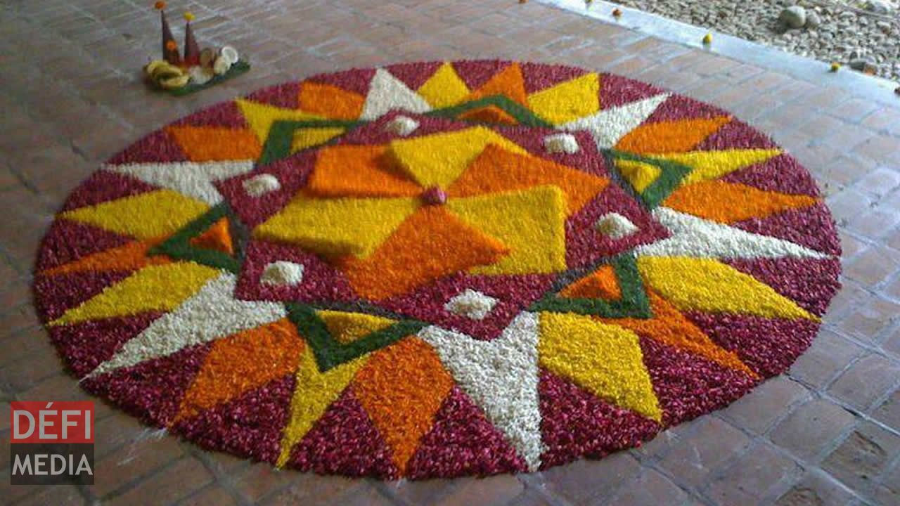 Les muggulus, décorations à base de riz cru coloré et de farine et présents sous diverses formes, ont été placés devant les maisons.
