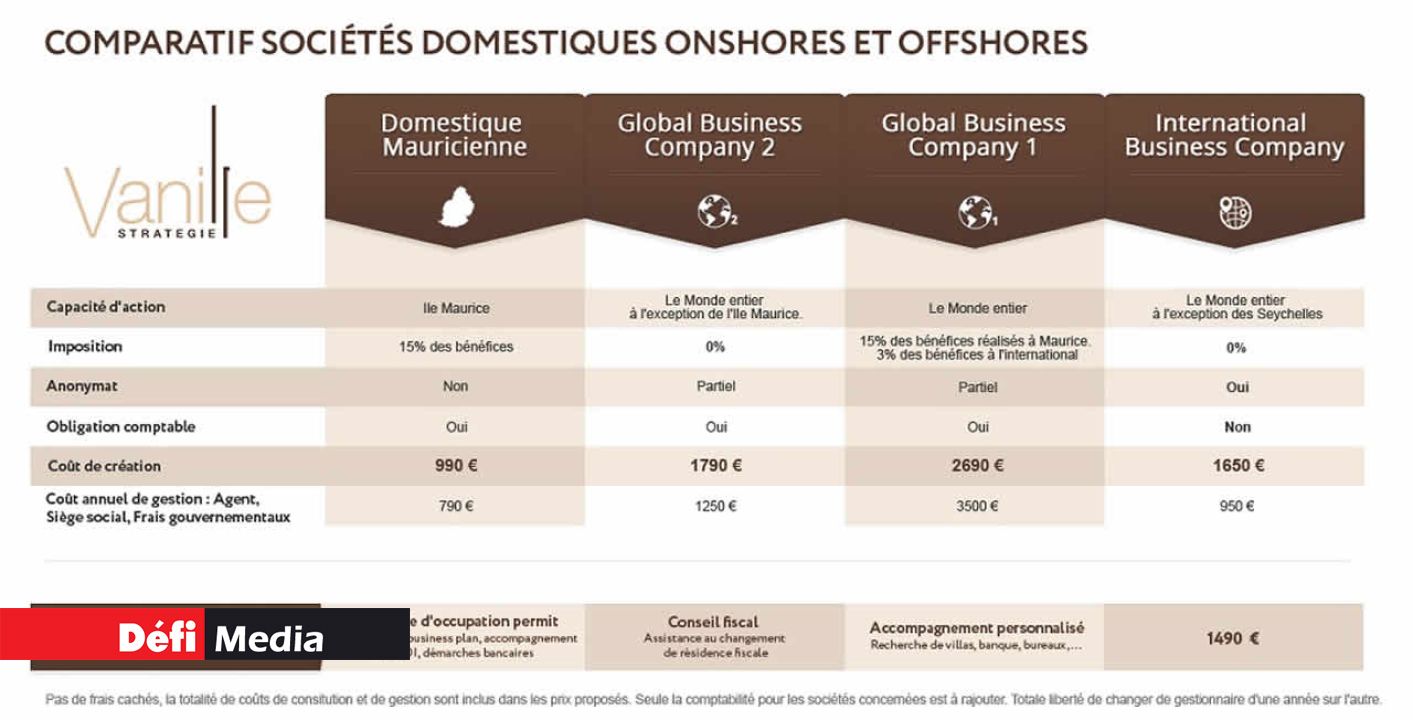 [[{"type":"media","view_mode":"media_large","fid":"15073","attributes":{"class":"media-image aligncenter size-full wp-image-25276","typeof":"foaf:Image","style":"","width":"1280","height":"652","alt":"Panama papers"}}]] La firme Vanille-Stratégie apporte un éclairage sur le mode d’opération des acteurs du secteur de l’offshore. En quoi une société offshore diffère-t-elle d’une entreprise classique ? Si le terme effraie parfois, cela vient simplement de la caractéristique principale de ces sociétés qui peuvent agir dans le monde entier, à l’exception de leur pays de création. Une société offshore mauricienne pourra ainsi faire des affaires dans l’ensemble des pays de la planète à l’exception de Maurice. On les différencie des entreprises « onshore » qui travaillent principalement dans leur pays de création et s’y acquittent de l’impôt sur les sociétés. Les sociétés offshores ne paient-elles vraiment aucun impôt ? Oui et non. Si l’entreprise est offshore à 100 % (à Maurice ou aux Seychelles), elle n’aura aucun impôt sur les bénéfices à régler dans son pays d’accueil. Néanmoins, si vous optez pour une entreprise « hybride », mi-offshore mi-onshore, comme la GBC1 mauricienne, celle-ci paiera 15 % d’impôt sur les sociétés sur son activité mauricienne et 3 % sur son activité à l’étranger. Est-ce illégal de posséder une société offshore ? Non. Détenir les parts d’une société basée à l’étranger, qu’elle soit offshore ou onshore, n’a absolument rien d’illégal. Le fisc français exige, par contre, que vous en déclariez l’existence et idem pour ses bénéfices. Les comptes offshore sont-ils totalement anonymes ? Oui. Votre nom n’apparaît pas dans les registres du pays où les sociétés sont créées. Seul notre cabinet d’avoués partenaires y a accès. Doit-on m’associer à un ressortissant mauricien pour créer une société ? Non. Toutes les sociétés que nous constitutions sont détenues à 100 % par nos clients. Il est recommandé d’éviter tout montage qui ne vous donnerait pas le contrôle total de votre société. Suis-je le seul à avoir accès à mon compte bancaire ? Oui. Vous êtes le seul à posséder les accès Internet de votre compte. Ceux-ci vous permettent d’envoyer ou de recevoir des virements dans le monde entier en toute sécurité. La banque ne répond qu’à votre seule adresse email et au numéro de téléphone que vous lui avez communiqué.Quand Oxfam critique la Banque mondiale