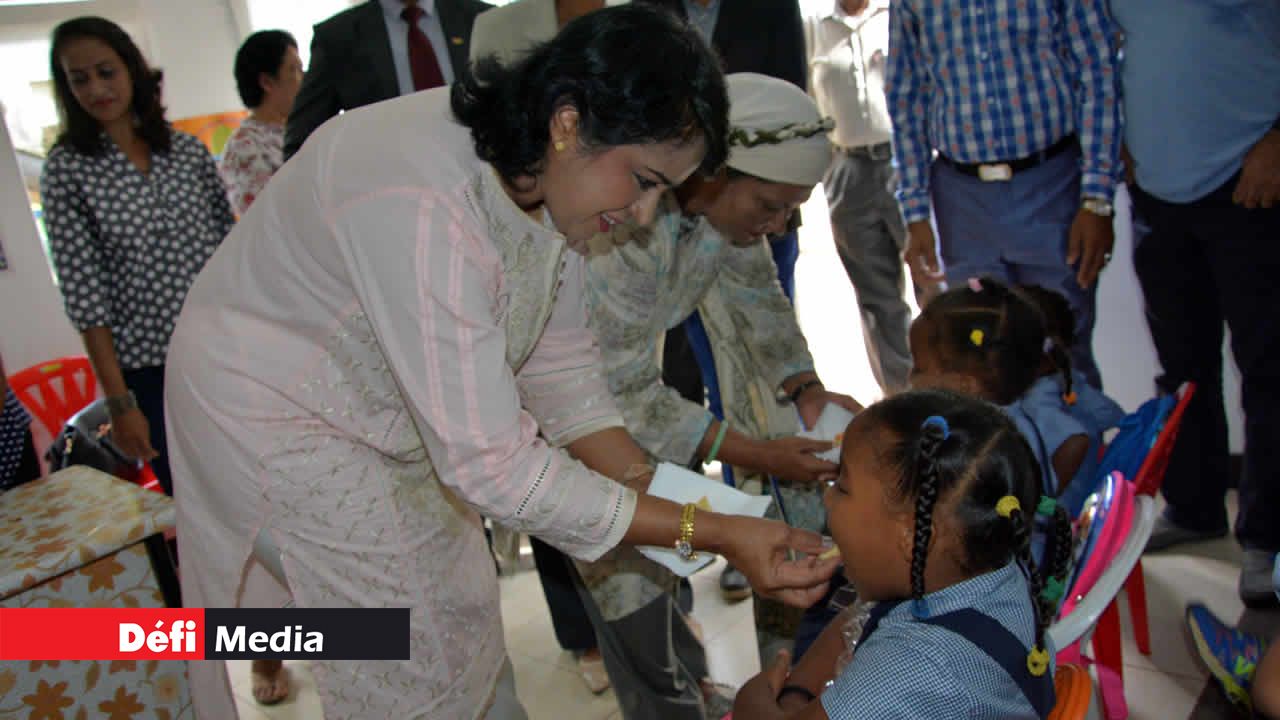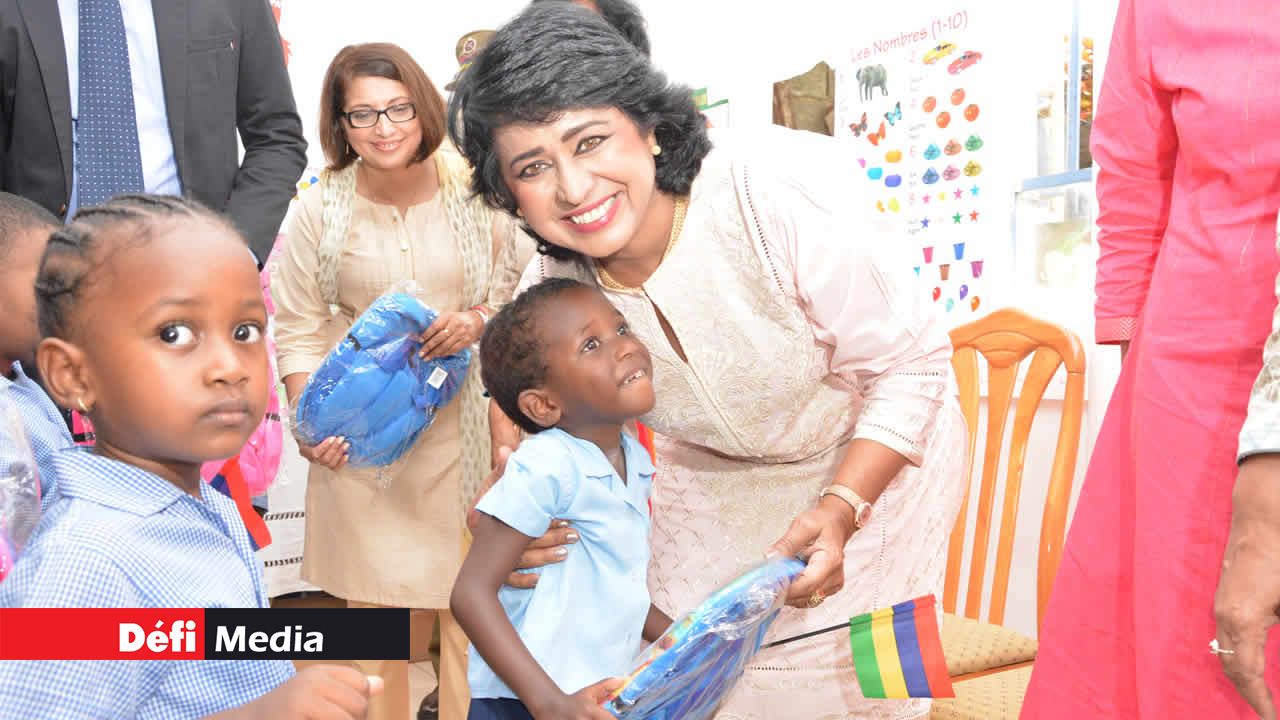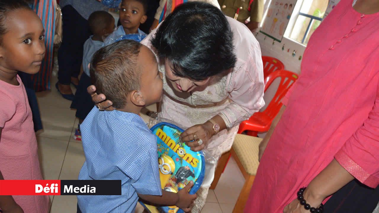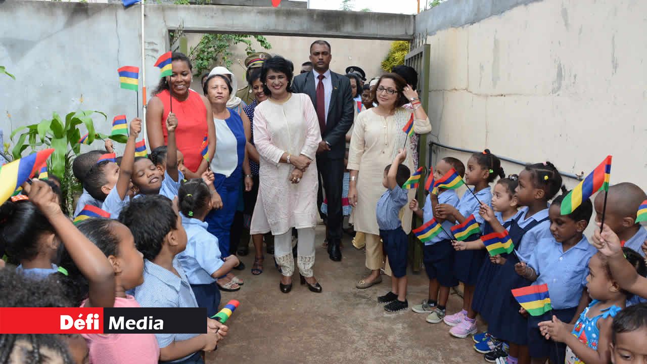 L’ambiance était conviviale. Elle a été accueillie à l’entrée de l’école, par une cinquantaine d’enfants avec le drapeau quadricolore en main. Les enfants ont chanté une petite chanson sur la fraternité et le mauricianisme. Mme Marie Lourde, responsable de l’école a remercié la présidente pour avoir choisi l’établissement pour fêter Pâques avec des enfants défavorisés. Elle était très émue et a souhaité bonne chance à la présidente.