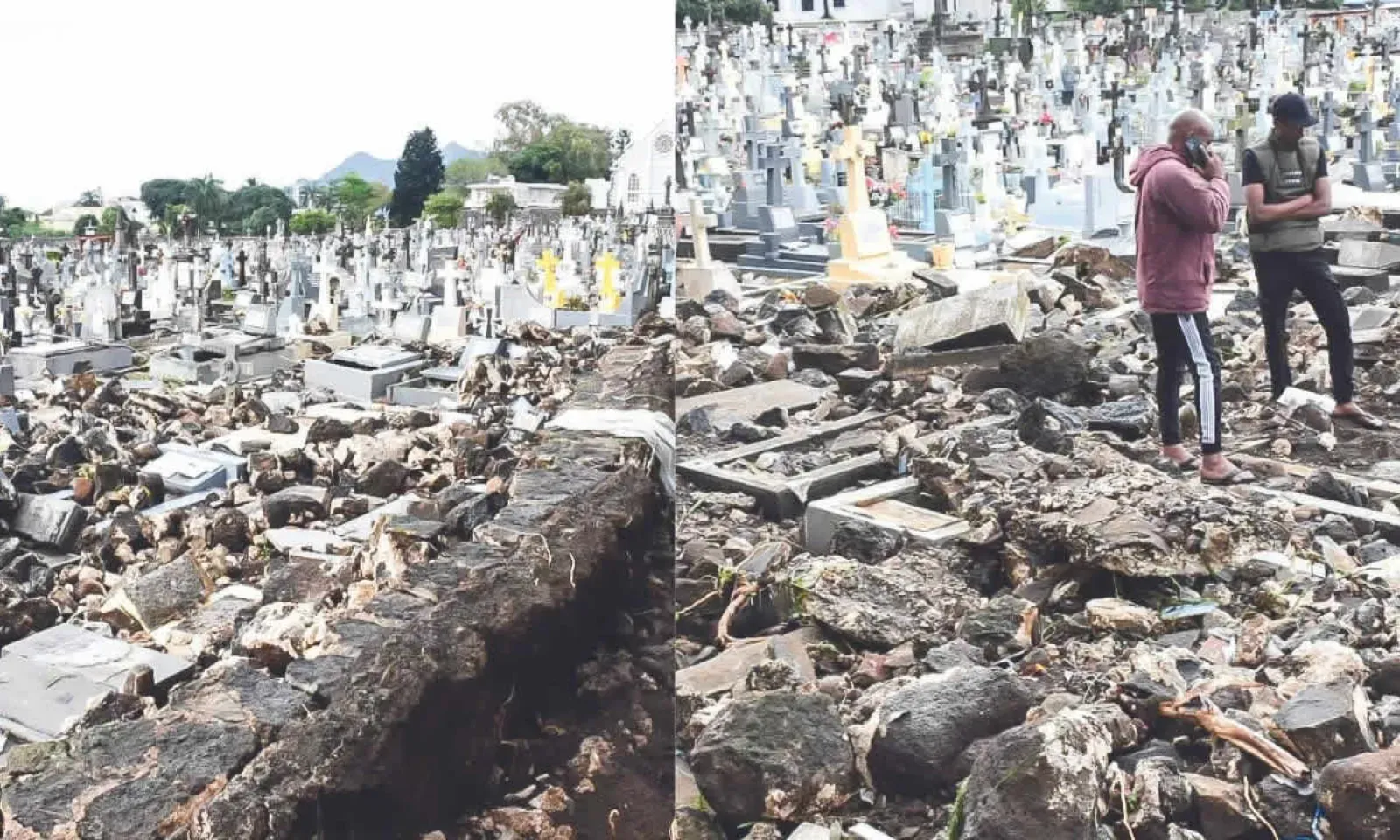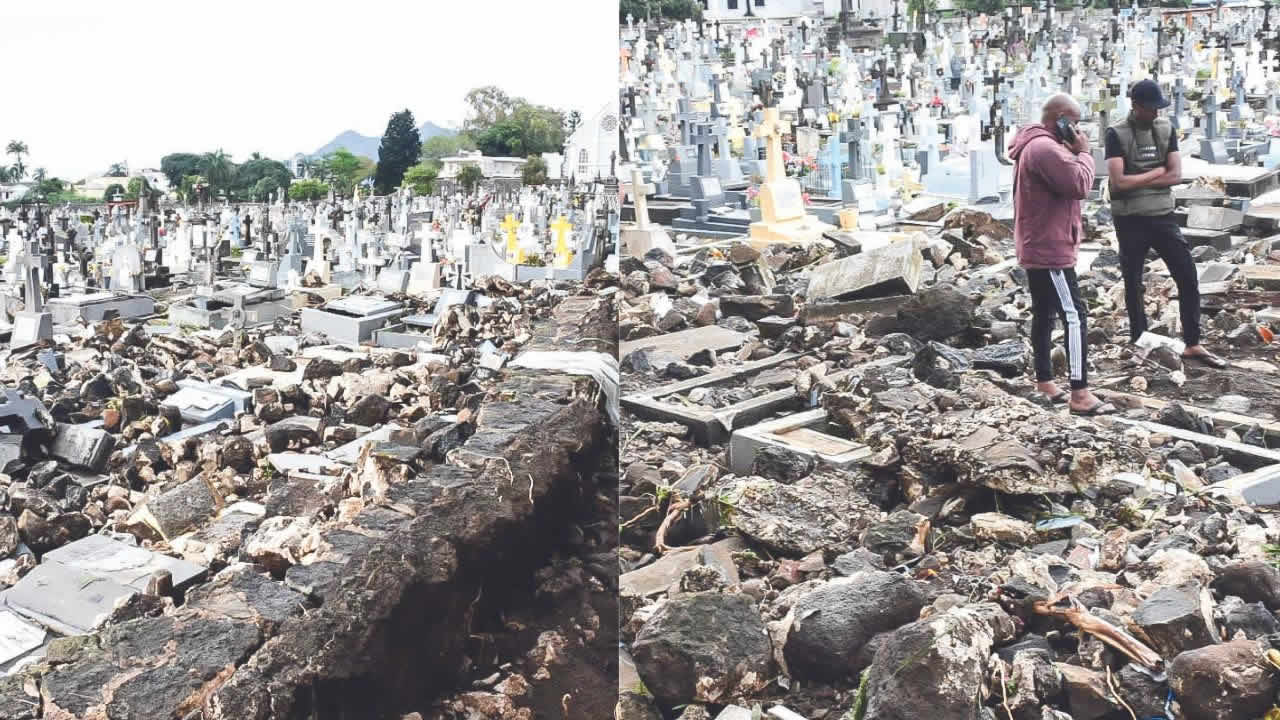 Plusieurs tombes du cimetière ont été endommagées mercredi après l’effondrement d’une partie du mur, provoqué par des accumulations d’eau dues aux pluies torrentielles.