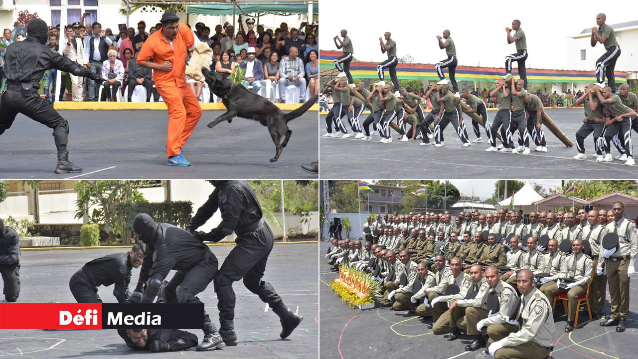 78 recrues ont participé à la passing-out ceremony à la prison de Beau-Bassin. Quatre parmi elles ont été récompensées. La Correctional Emergency Response Team, sous la supervision de Bruneau Laurette, a proposé des démonstrations : interventions à mains nues, utilisation de la matraque. La prison band et Maddy et Massa, deux chiens qui alertent les officiers s’il y a quelque chose de louche ont aussi assuré le show.