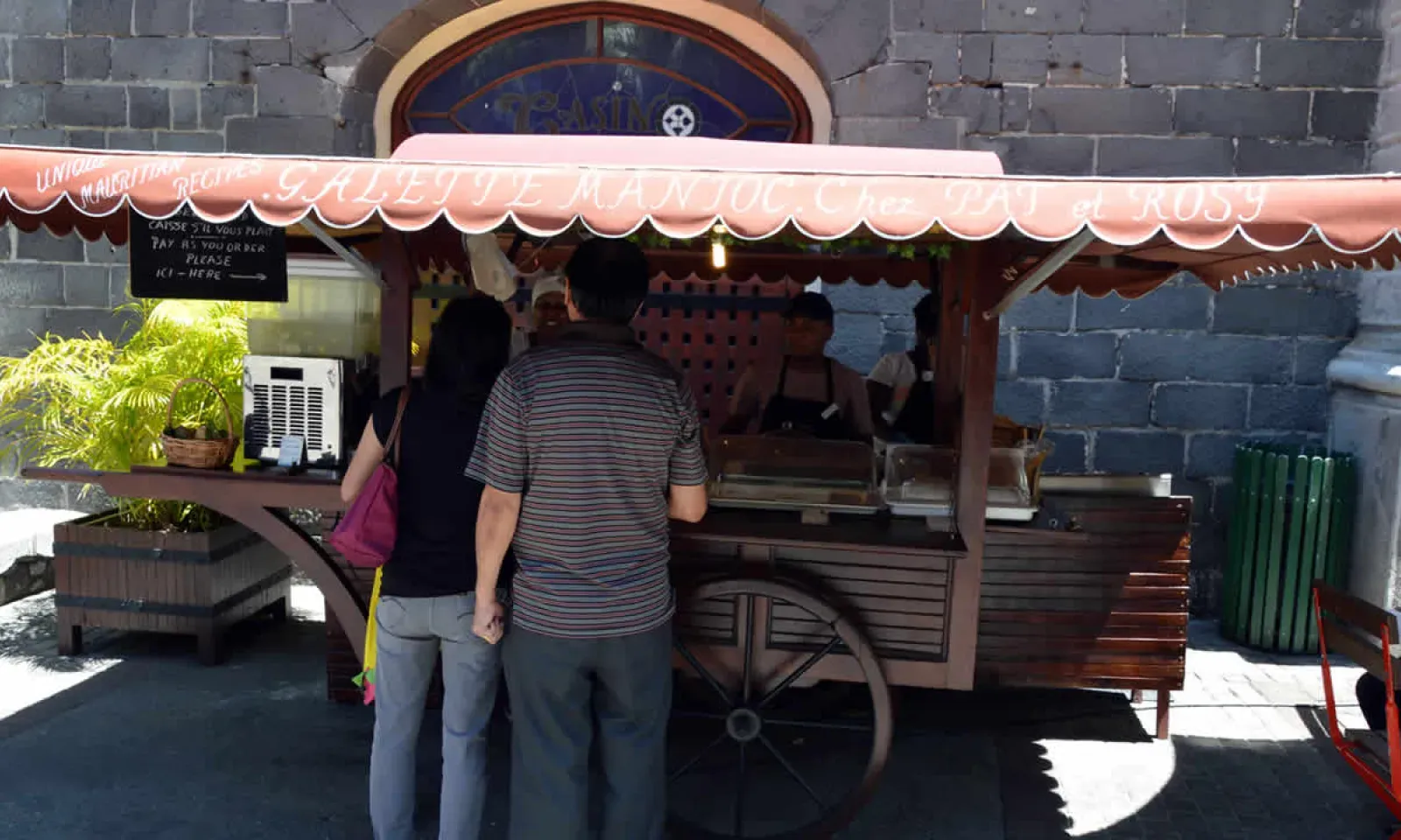 Vendredi, à l’heure du déjeuner au Caudan Waterfront, des gens font la queue devant l’échoppe Pat & Rosy pour s’acheter des faratas de manioc, accompagnés d’un curry de gros pois ou de brède songe, d’achard de légumes et d’autres sauces. On y trouve aussi des massepains de manioc, des galettes, du pudding et des gâteaux coup de poing.