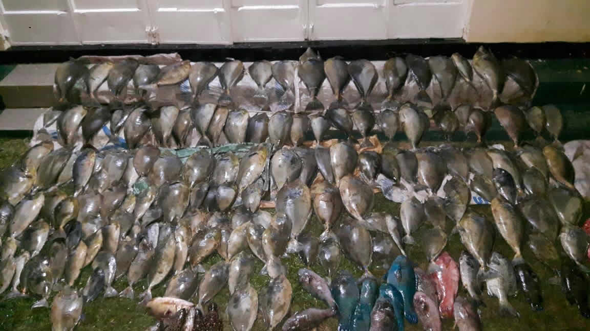 Joli coup de filet de la National Coast Guard (NCG) vendredi soir à Bois-des-Amourettes. Près de 150 kilos de poissons y ont été saisis après que des officiers de la NCG ont pris en flagrant délit quatre personnes qui s'adonnaient à de la pêche sous-marine. Ce qui est un délit.