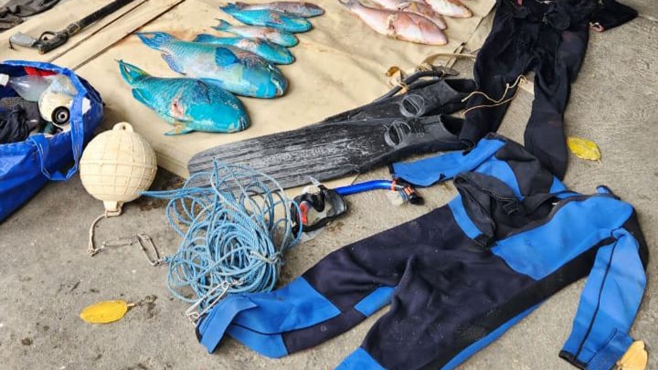 Un moteur Yamaha 15 HP, deux réserves de carburant, un fusil sous-marin et des équipements de plongée ont été saisis lors de cette opération de la National Coast Guard et de la Maritime Intelligence Cell sous la supervision de l’inspecteur Chuckowry.
