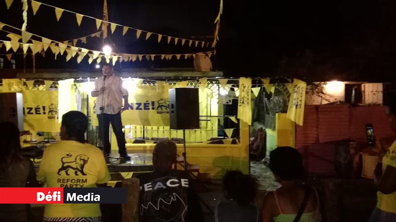Leevy Frivet, candidat du Reform Party dans la circonscription no. 1 (Port Louis-Ouest/GRNO) a pris la parole lors d'un congrès nocturne à Richelieu ce vendredi. «C'est un jour historique. Pendant 50 ans vous avez voté le MSM, MMM, PTr et le PMSD. Rom la napa bon mem, to bwar mem ! Si j'ai décidé de me jeter dans la politique, c'est parce que je ne veux pas rester insensible à la souffrance des habitants de Richelieu.
