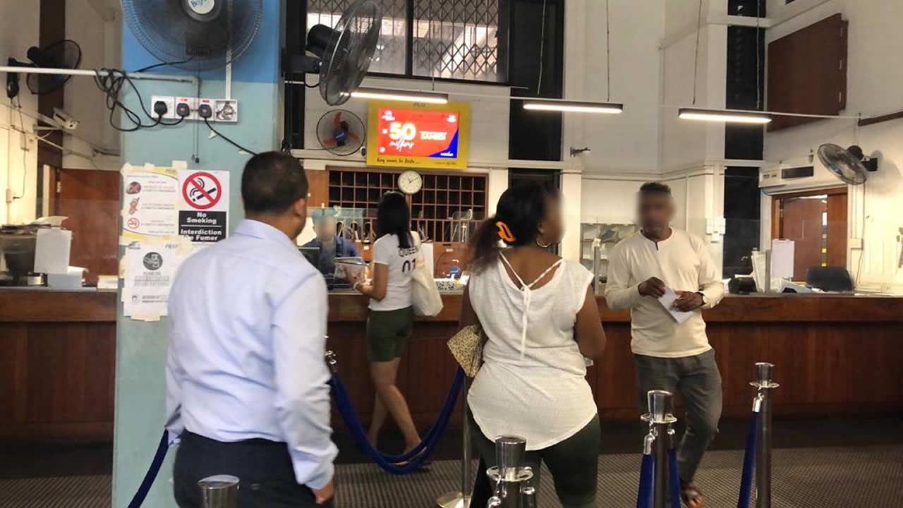 Plus loin, au bureau de poste de Port-Louis centre, situé dans le bâtiment Emmanuel Anquetil, pas l’ombre d’un bénéficiaire en vue. Malgré les nombreux va-et-vient, le nombre de personnes venues toucher les différentes pensions est faible. Ceux qui franchissent la porte y sont, pour la plupart, enveloppe en main, pour régler leurs factures.
