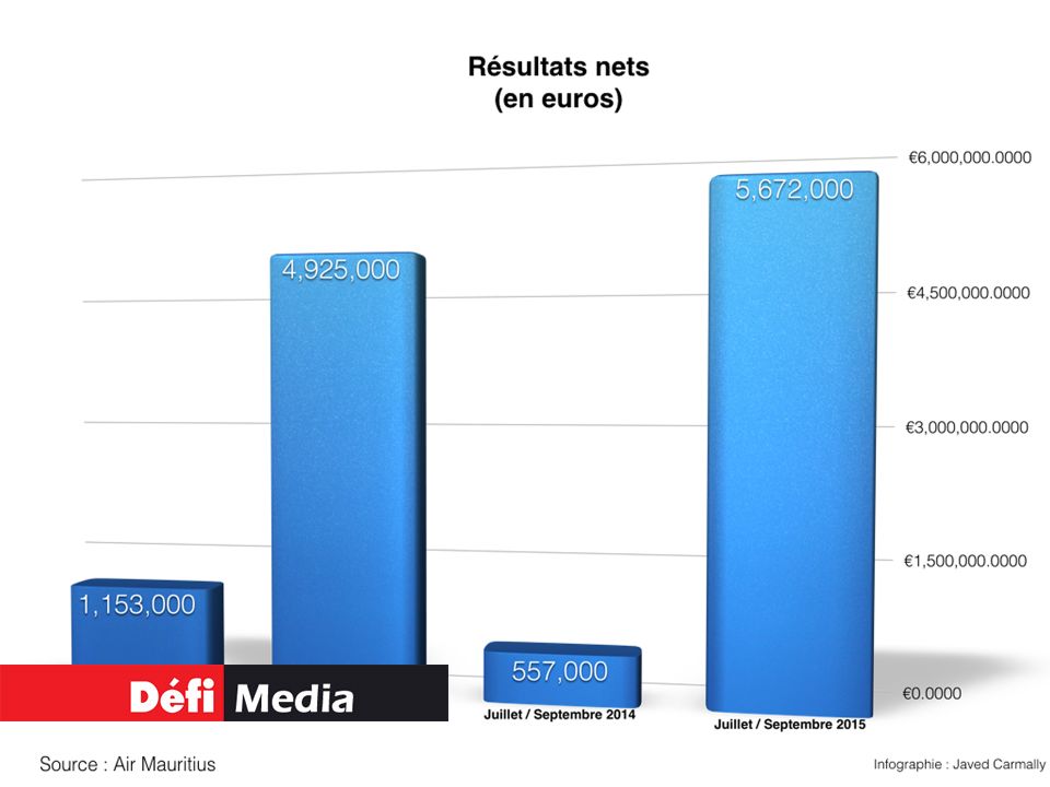 Pour ce deuxième trimestre de son année financière, Air Mauritius a réalisé des profits de quelque 5,7 millions d’euros (Rs 226 millions), selon son bilan publié sur le site de la Bourse de Maurice. Pour la période correspondante en 2014, les profits étaient de quelque Rs 24 millions. Excluant les pertes associées au hedging du prix de carburant, la profitabilité nette aurait été d’environ Rs 554 millions.