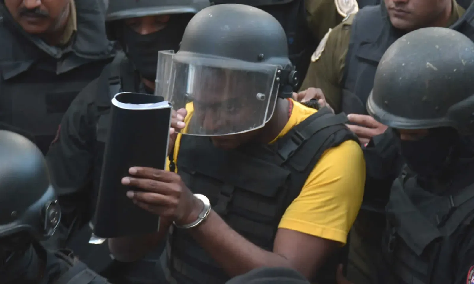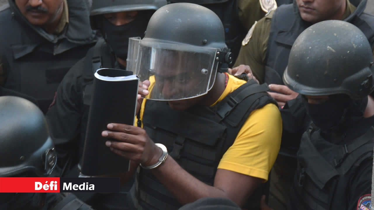 Portant son traditionnel t-shirt jaune et son jean bleu à chaque fois qu’il comparaît devant la cour, Peroomal Veeren a suscité la curiosité de tout le monde. Menotté, il portait un gilet pare-balles et un casque de protection. Ayant pris place à l’intérieur de la salle d’audience, le caïd observait l’interieur minutieusement avant de regarder ceux qui étaient présents. À quelques minutes du début de la séance, il a demandé qu’on lui enlève ses menottes. Mais sa demande pour retirer son gilet pare balles a été vaine.