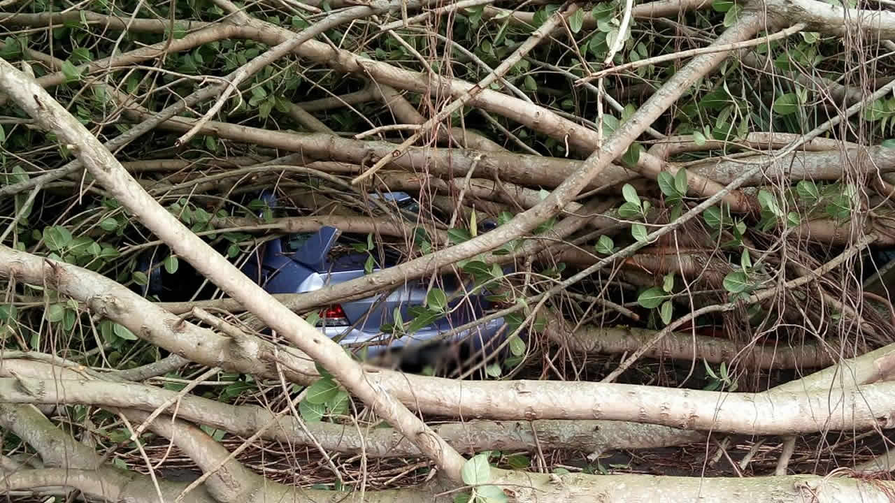 Un arbre est tombé sur une voiture à Petit Bel-Air, dans le sud-est du pays. Il s’agit d’un grand arbre dont les branches ont totalement recouvert le véhicule comme vous pouvez le voir dans notre diaporama.