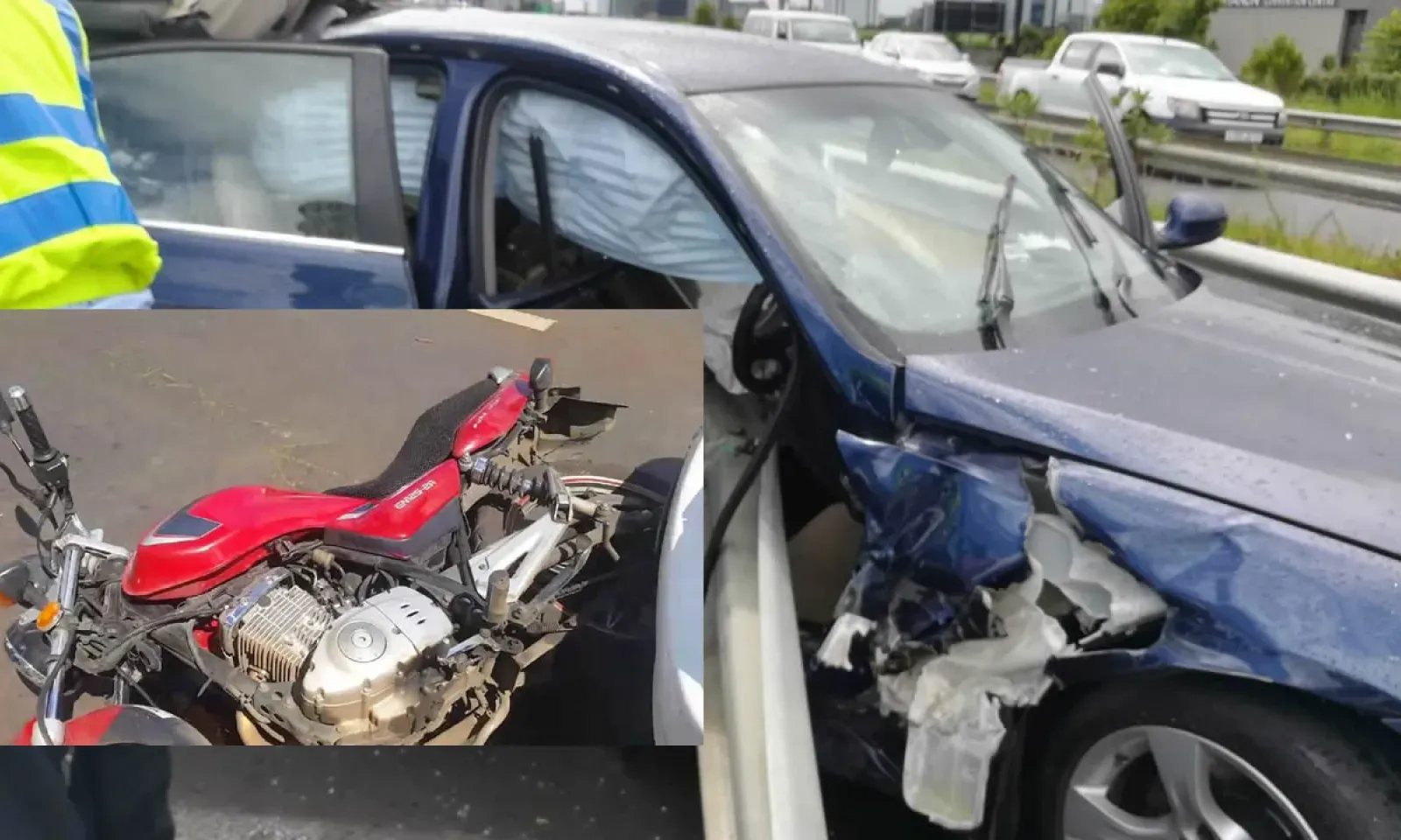 Wakeel R., 38 ans, a échappé au pire. Cet habitant de Bambous sortait de Petite-Rivière pour se rendre à son domicile vers 10 h 30. À hauteur du Foyer Fiat à Petite-Rivière, il jette un œil dans son rétroviseur et aperçoit une voiture qui s’approche. Sans se soucier de rien, il poursuit sa route, mais en une fraction de seconde, il est percuté de plein fouet. « Enn sel coup linn tapp ek mwa. Linn traine mwa lor plisieur metres » explique le motocycliste. Sa moto était couchée face aux roues de la voiture.