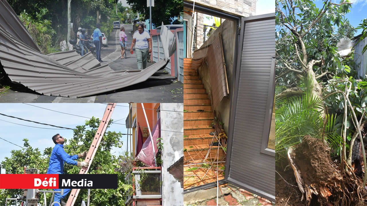 Il n’y a certes pas eu de perte de vie humaine, mais cette visite-éclair, ayant eu lieu à 11h40, a provoqué de nombreux dégâts matériels, brisant certaines habitations sur son passage, mettant des arbres à terre et endommageant les lignes électriques du Central Electricity Board (CEB) de même que celles de Mauritius Telecom (MT). « Aucun blessé n’est cependant à déplorer », lance avec soulagement Guilaine Rateau, présidente du conseil de village.