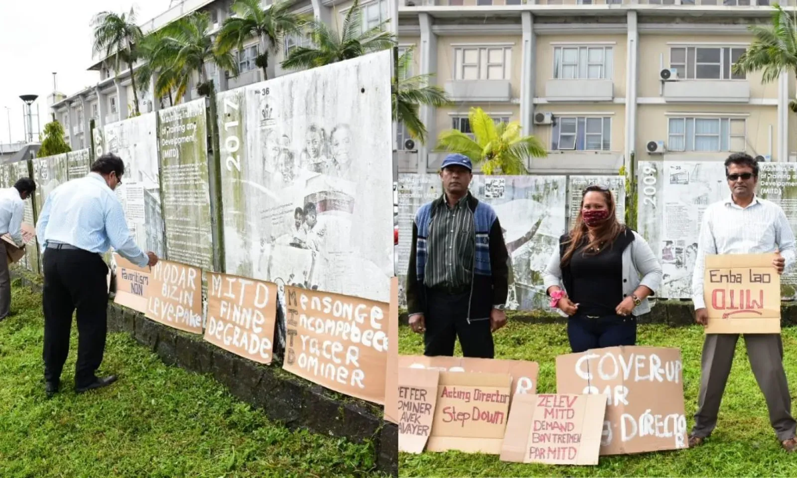 Pancartes en main, des membres de la Mauritius Institute of Training and Development Employees Union ont manifesté devant le bâtiment de la MITD à Phoenix ce vendredi matin, 5 août.