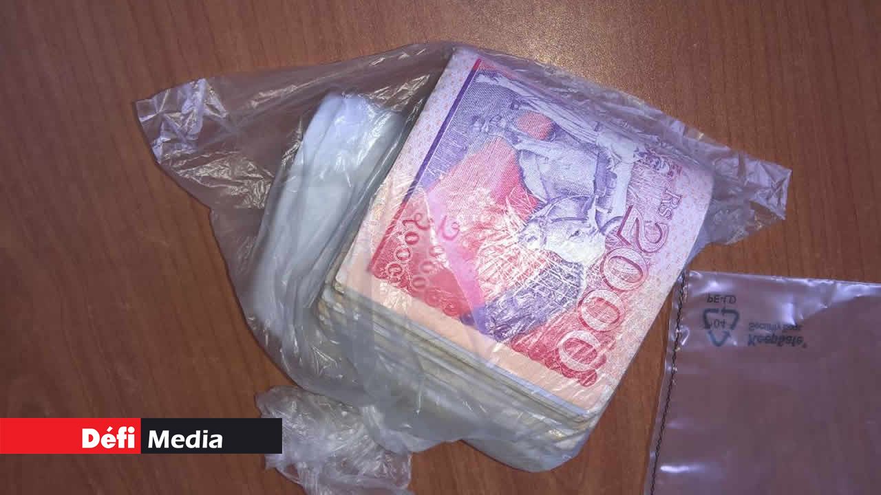 Le montant total de l’argent saisi se chiffre à Rs 400 000 en liquide. Les enquêteurs soupçonnent que cet argent proviendrait du trafic de drogue.