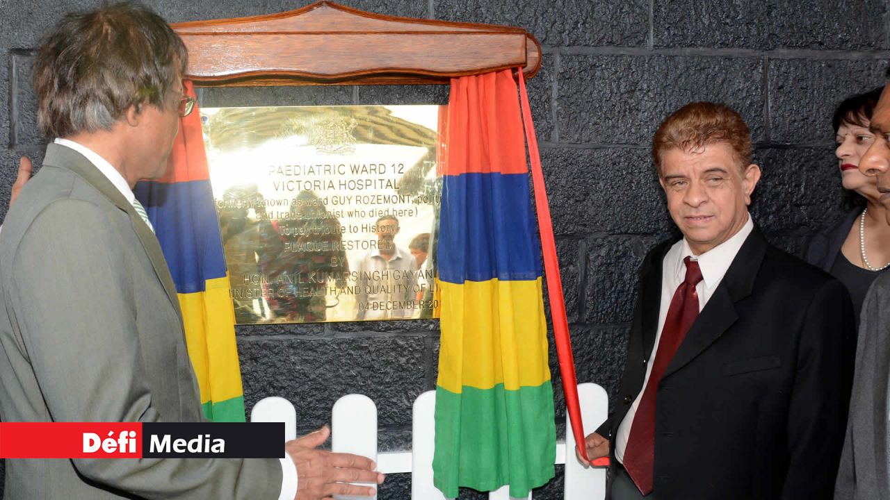 Vendredi, le ministre de la Santé, Anil Gayan, a procédé au dévoilement de la nouvelle plaque en présence des membres de la famille de Guy Rozemont. La plaque en mémoire de Guy Rozemont avait alors été remplacée par une autre portant son nom ainsi que celui de l’entrepreneur Sadaseeven Tayelamay, qui avait obtenu le contrat pour réaliser les travaux il y a deux ans.