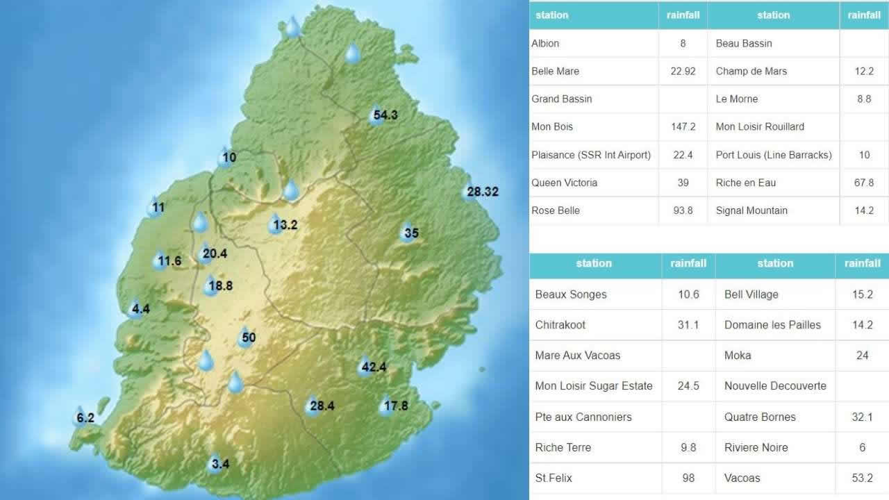 Voici les chiffres communiqués par la station météorologique de Vacoas :