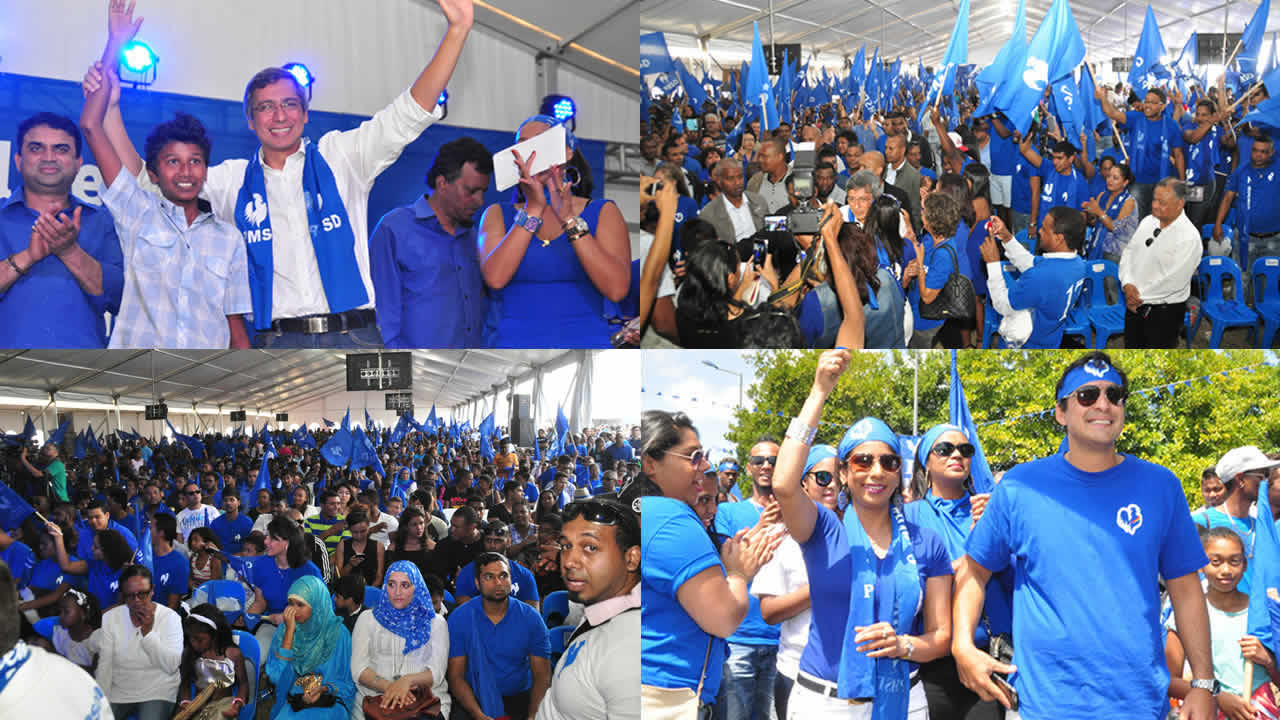 Les dirigeants des bleus, dont le leader du parti Xavier-Luc Duval, ont pris la parole. Voici l’ambiance en images...