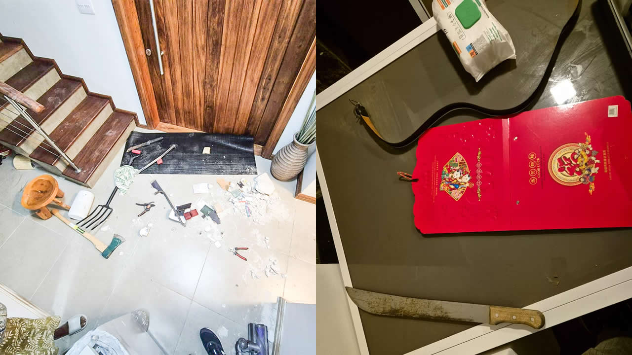 Dans la maison, plusieurs outils récupérés dans le garage de la victime ont été saisis par la police. Une hache, une fourche de jardinage, une pince coupante et un pied-de-biche ont été trouvés à l’intérieur de la maison. La police compte les faire analyser pour les besoins de l’enquête.