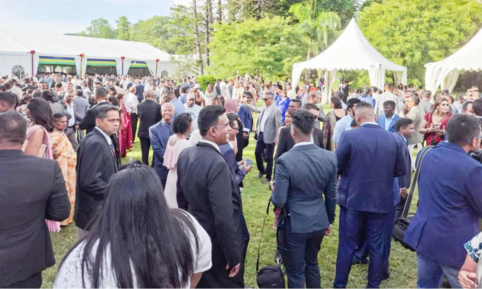 La Garden Party aurait réuni environ 7 000 personnes. Le Premier ministre, Navin Ramgoolam, les décorés de la République, des ministres, des députés ainsi que des activistes de la majorité ont fait le déplacement. Présence remarquée de l’ex-président de la République, Prithvirajsing Roopun et de l’ex vice-président Eddy Boissézon ainsi que de la Speaker de l’Assemblée nationale, Shirin Aumeeruddy-Cziffra.