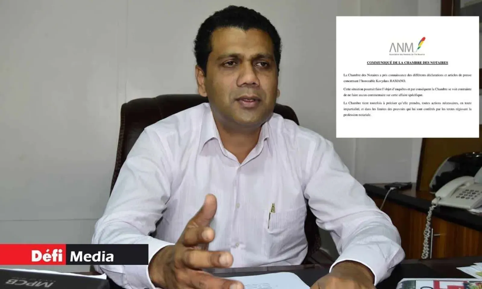 Dans un communiqué émis, en ce jeudi, 20 juin, la Chambre des Notaires dit avoir pris connaissance des différents déclarations et articles de presse concernant l'honorable Kavydass Ramano.