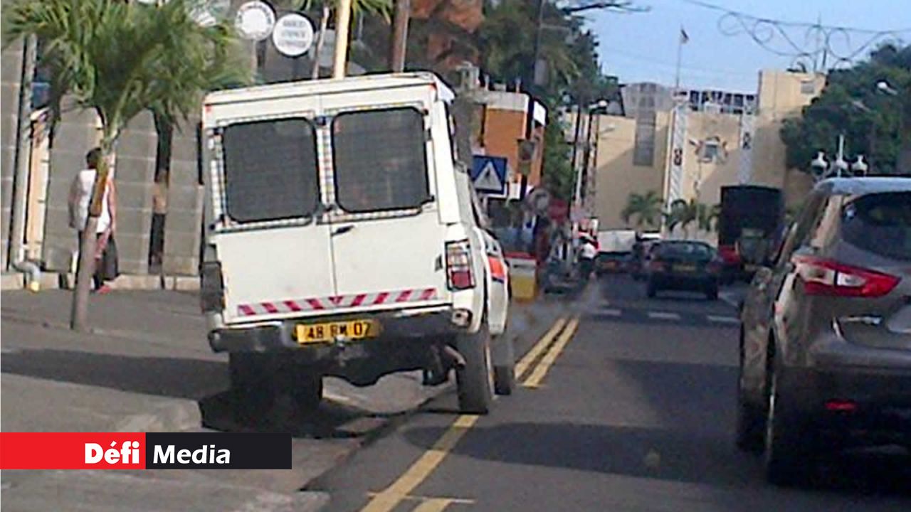 La deuxième, un autre véhicule de la police devant les bureaux du journal Le Matinal, carrément sur les trottoirs réservés pour les piétons.