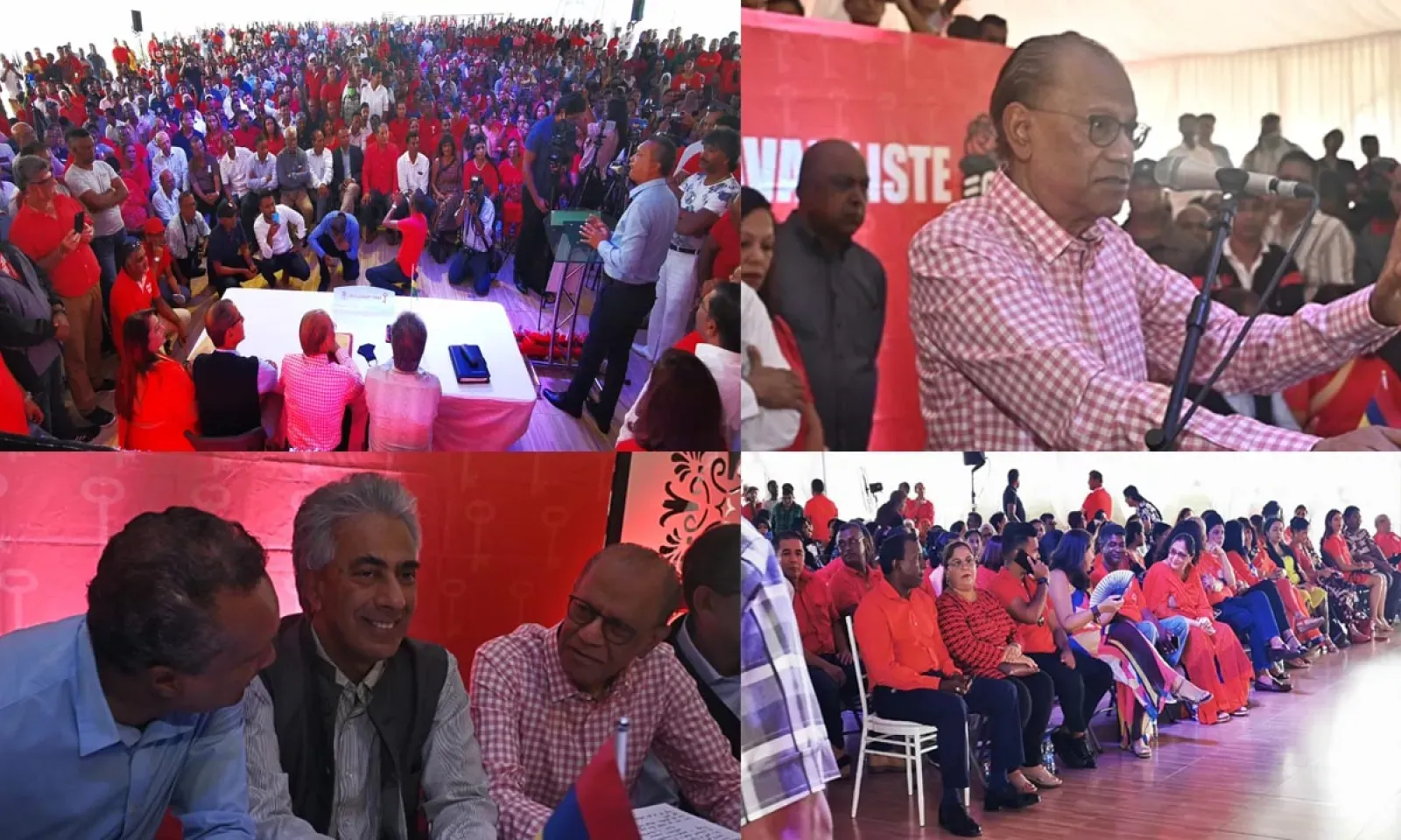 Patrick Assirvaden, le président du PTr, Arvin Boolell et Navin Ramgoolam ont pris la parole.