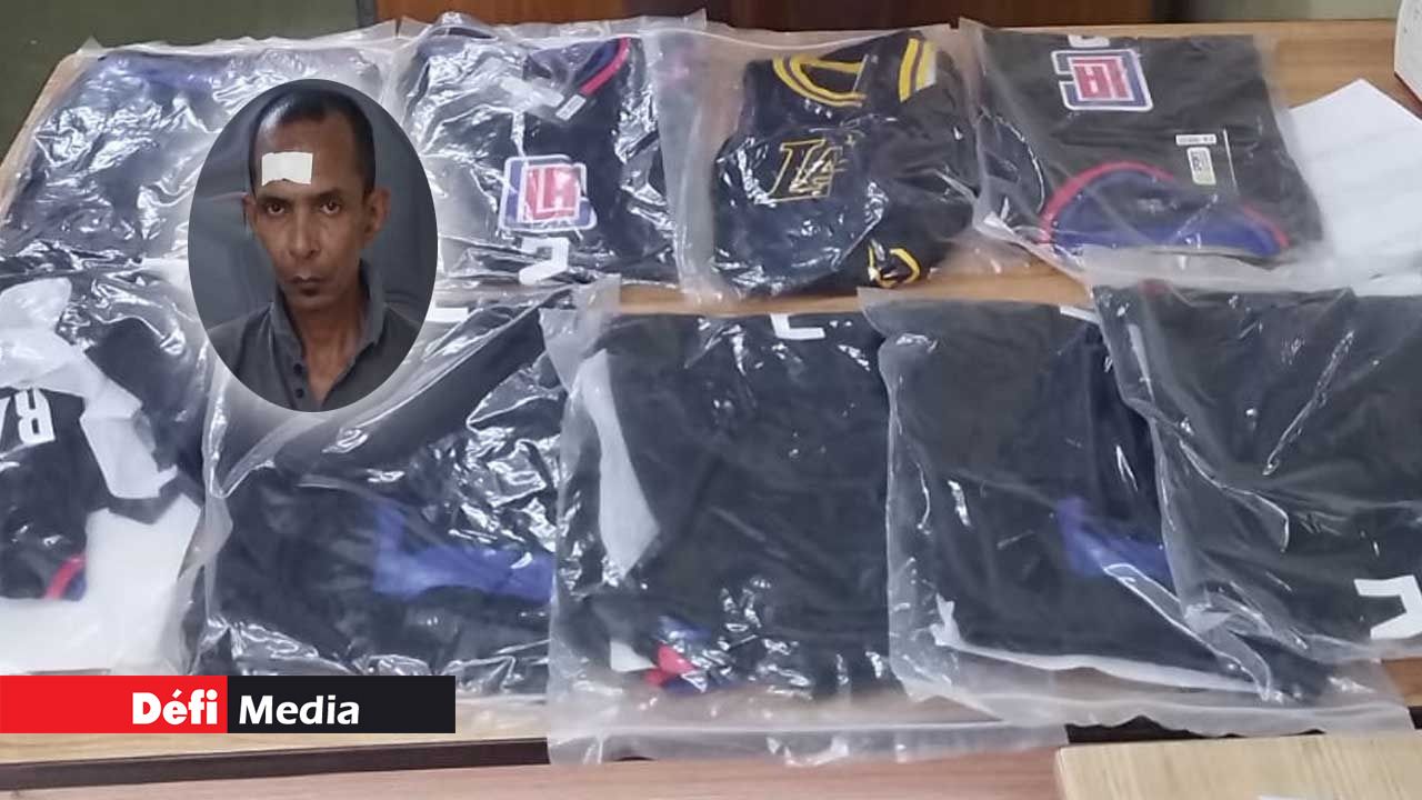 Neuf ‘jerseys’ de différentes couleurs et tailles d’un montant de Rs 750 chacun aussi bien qu’un t-shirt, valant Rs 200 ont été retrouvés dans le sac du suspect. Ce dernier a été par la suite remis à la police.
