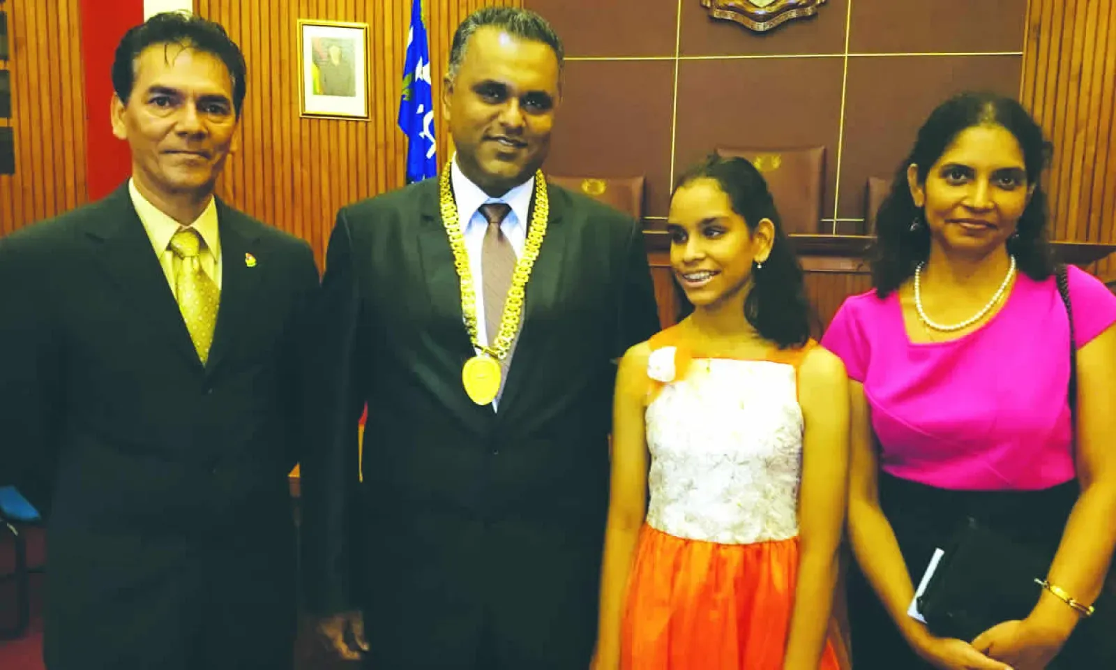 Un parchemin en braille lui a été remis par le lord-maire, Oumar Kholeegan, lors d’une cérémonie à la salle de conseil de la municipalité de Port-Louis. Ses proches et de nombreuses personnalités politiques étaient présents.