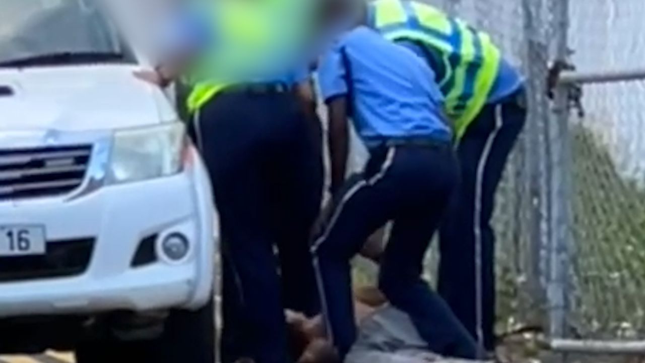 Les faits se sont déroulés dimanche dernier, vers 16 h 45 à l’arrière de l’hôpital Dr Jeetoo à Port-Louis. Selon un témoin, l’individu est un patient qui se serait enfui de l’hôpital. Mais, il a été vite rattrapé par la police. « Li ti ena lastoplas dan so ledos ek dan so lame kot met serom », raconte le témoin. Il a filmé une partie de la scène.