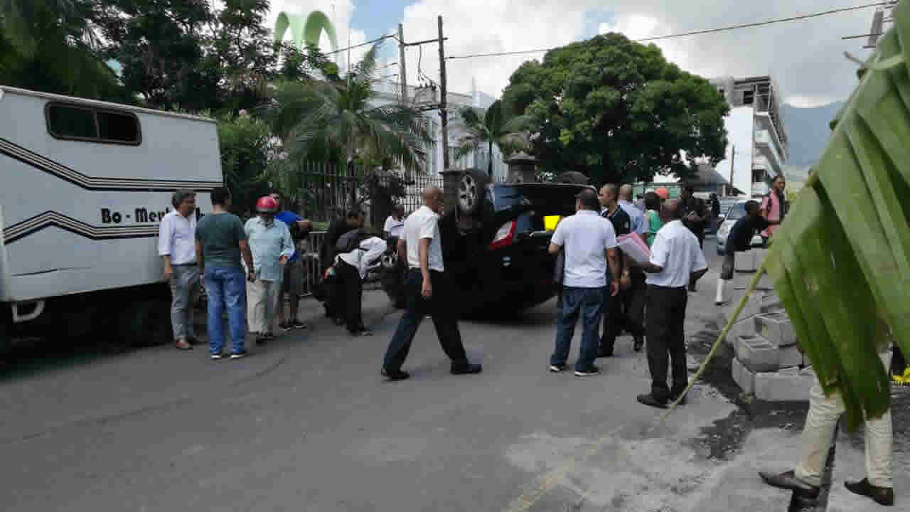 Image Une voiture s’est renversée à la rue St-Denis, Port-Louis, ce jeudi 20 avril. On ne déplore aucun blessé grave. Le chauffeur a été extirpé de son véhicule. Publicité View the discussion thread.