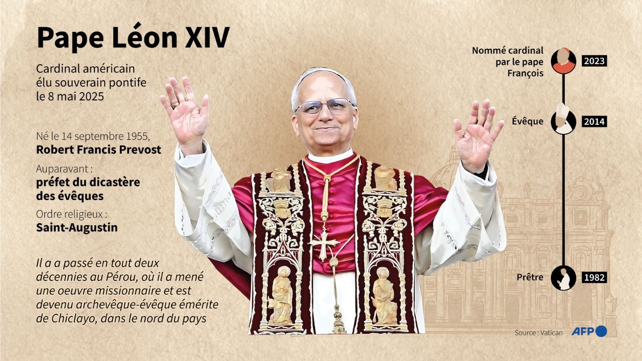 L'Américain Robert Francis Prevost, 69 ans, devenu jeudi le premier pape originaire des Etats-Unis sous le nom de Léon XIV, est un homme d'écoute et de synthèse, classé parmi les modérés, pasteur du quotidien propulsé par François dans la hiérarchie vaticane.