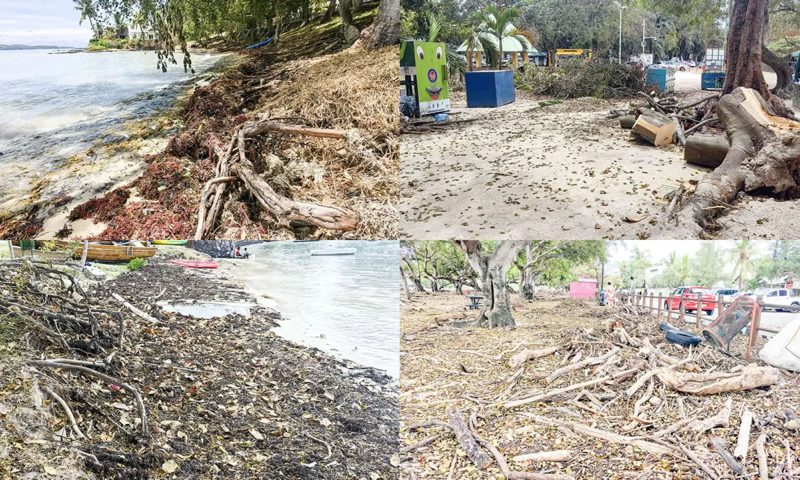 En plus des dégâts causés par les vents violents et les pluies diluviennes, le cyclone a entraîné une forte érosion du littoral à certains endroits et un apport massif de débris marins sur les côtes. On retrouve des amas d’algues, de brindilles, de rondins et de petites branches, charriés par les vagues et les courants.