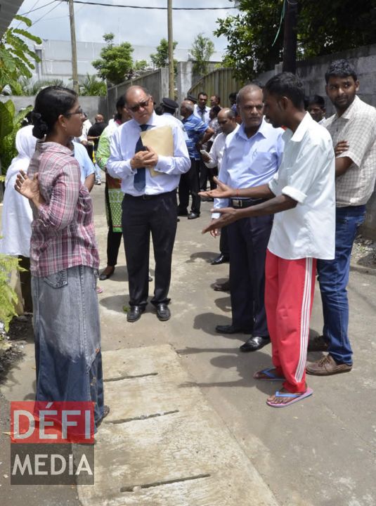 Cité La Cure a reçu, en fin d’après-midi jeudi, une visite assez inhabituelle. Les ministres Pradeep Roopun, Raj Dayal et Aurore Perraud étaient venus faire un constat de la situation à la suite des récentes grosses averses. « Aster la zot vin guet nou», lance un habitant à Pradeep Roopun, ministre de l’Intégration sociale, alors que ce dernier s’adresse à des journalistes. Le ministre ne se laisse pas intimider. « Nu ti vini et nu pe pran zot kont », rétorque-t-il.