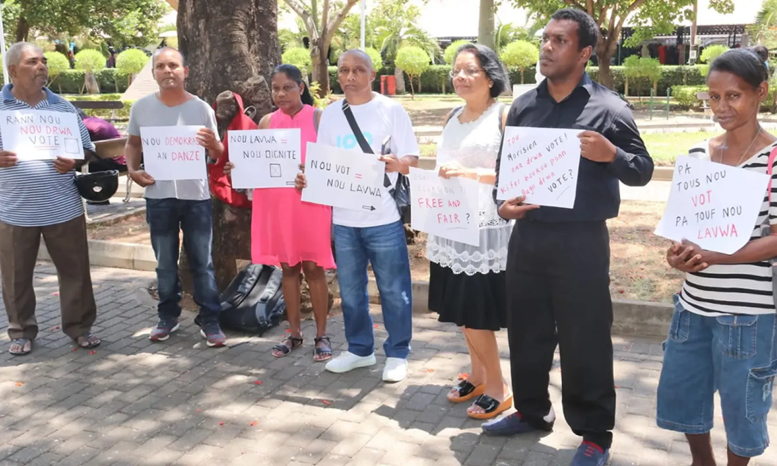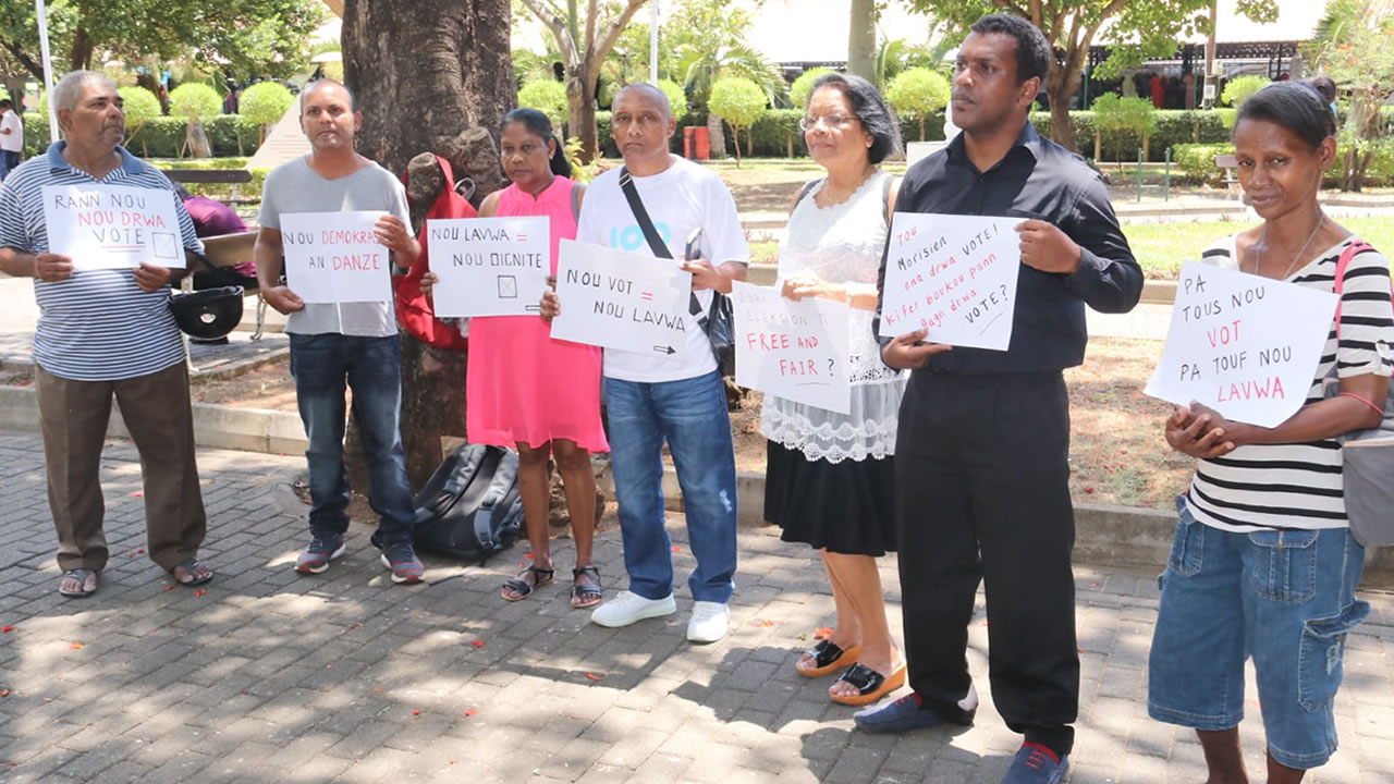 Au jardin de la Compagnie, à Port-Louis, des membres de cette plateforme, pancartes en main, ont fait entendre leur voix. « Nou vot = nou lavwa », « Pa touss nou vot, pa touf nou lavwa », ont-ils scandé. « Beaucoup de gens n’ont pu voter. Le droit de vote est sacré. (…) On demande que les élections soient respectées selon la Constitution », a déclaré Olivier Maigre, membre de la plateforme. Rappelons que ce dernier était candidat de 100% Citoyens au n. 2 (Port-Louis Centre/Port-Louis Sud) pour les dernières législatives.