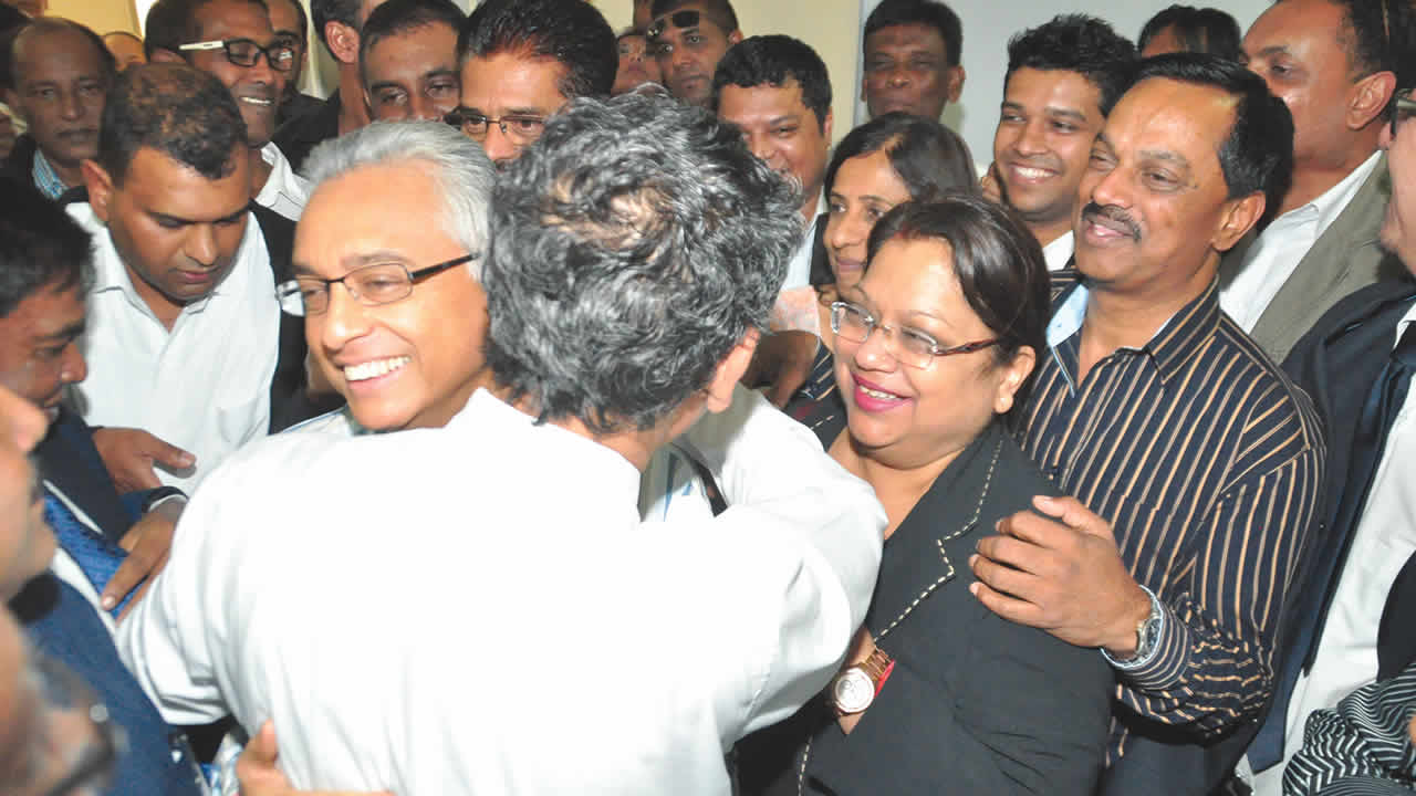 Au rez-de-chaussée, les partisans s’amassent. « Felisitasyon… twa osi parey. » Partisans, ministres et députés se congratulent. Chacun y va de sa petite théorie sur ce qui va se passer ensuite. Le DPP fera-t-il appel ? se demande-t-on. Les banderoles habituelles « Vive Pravind » sont déroulées. À 15 h 15, Soodesh Callichurn et Mahen Seeruttun débarquent, sous les applaudissements des partisans. D’autres les suivent bientôt, Nando Bodha, Yogida Sawmynaden et plusieurs autres familiers de l’entourage du MSM, comme Sherry Singh, Kailash Trilochun et de nombreux attachés de presse.