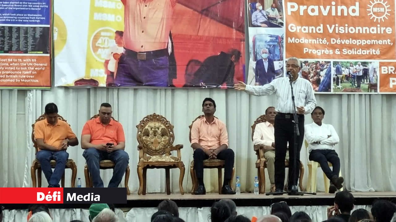 Il évoque la pension de vieillesse qui était de Rs 3 623 en 2014 et qui est désormais de Rs 13 500 pour ceux qui ont plus de 75 ans. « Les autres aussi auront bientôt Rs 13 500. On le fera avant la fin de notre mandat. Est-ce que vous auriez eu ça sous Ramgoolam ? Cet argent ne soulage pas que les retraités, mais aussi les enfants. (…) Si par malheur Ramgoolam et Bérenger viennent, oubliez les augmentations. »